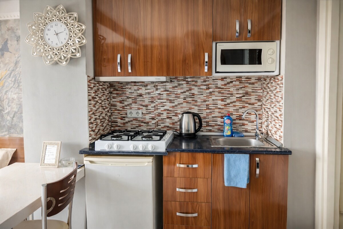 Մասնավոր ստուդիայի բնակարան, առանձին լոգասենյակ և առանձին մուտք Սուլթանահմեթ Հին քաղաքի սրտում, ընդամենը մեկ րոպե քայլելով դեպի բոլոր հիմնական պատմական տեսարժան վայրերը ՝ Կապույտ Սուլթանահմեթ մզկիթ և Հագիա Սոֆիա և Թոփքափի պալատ և ստորգետնյա Ցիստեռն և Սուլթանահմեթ կենտրոն: Բնակարանը հագեցած է. * օդորակիչ *անվճար Wi - Fi*Հարթ էկրանով հեռուստացույց ՝ արբանյակային ալիքներով *օրթոպեդիկ ներքնակներ *մինի չափի խոհանոց *ճաշասեղան/աթոռներ *արդուկ և արդուկի սեղան *վարսահարդարիչ *սրբիչներ, սավաններ և վերմակներ, անվճար մաքրում:
