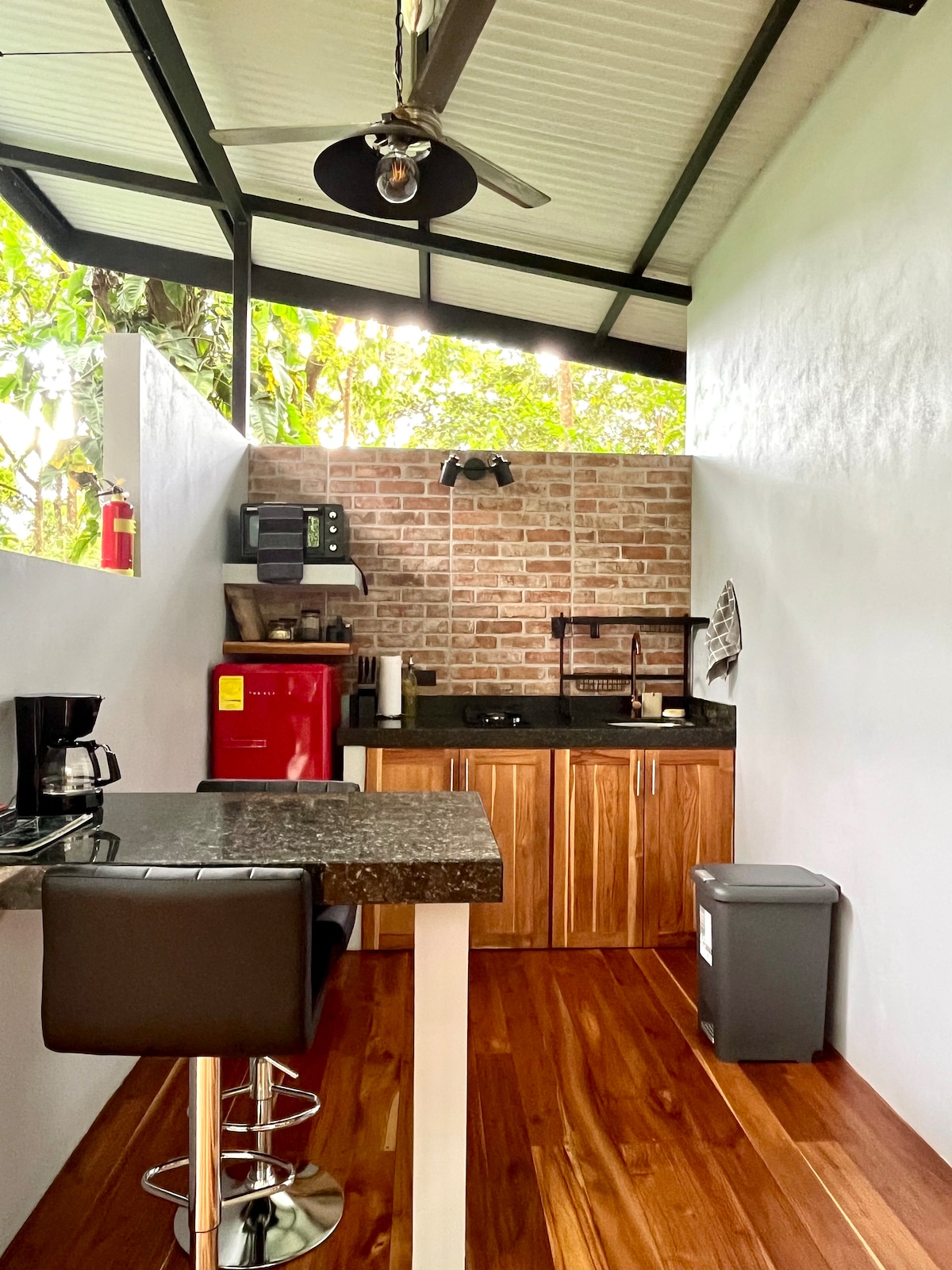 2bd 2ba ժամանակակից տուն ՝ լեռան վրա, օվկիանոսին նայող անձրևային անտառում ։ Ուվիտայից բարձր տեղակայված այս վայրում ձեզ կզգաք ամբողջովին մեկուսացած, չնայած կենտրոնից ընդամենը 12 րոպե է, և կա ԱՐԱԳ Wi-Fi։ 180° տեսարանները ձեզ կզարմացնեն։ Եվ, իհարկե, կա լողավազան, որտեղ կարող եք զովանալ՝ վայելելով անմոռանելի հանգիստ 26 հեկտարով ամպերի մեջ գտնվող օազիսում։ Այնպես որ, անկախ նրանից սուրճ է, թե թեյ, մի բաժակ գինի, սառը ըմպելիք, այն հիանալի կերպով կհամատեղվի Կոստա Ռիկայի մայրամուտի հետ։ 25 ԱՄՆ դոլար՝ մեկ լրացուցիչ հյուրի համար մեկ գիշերվա համար