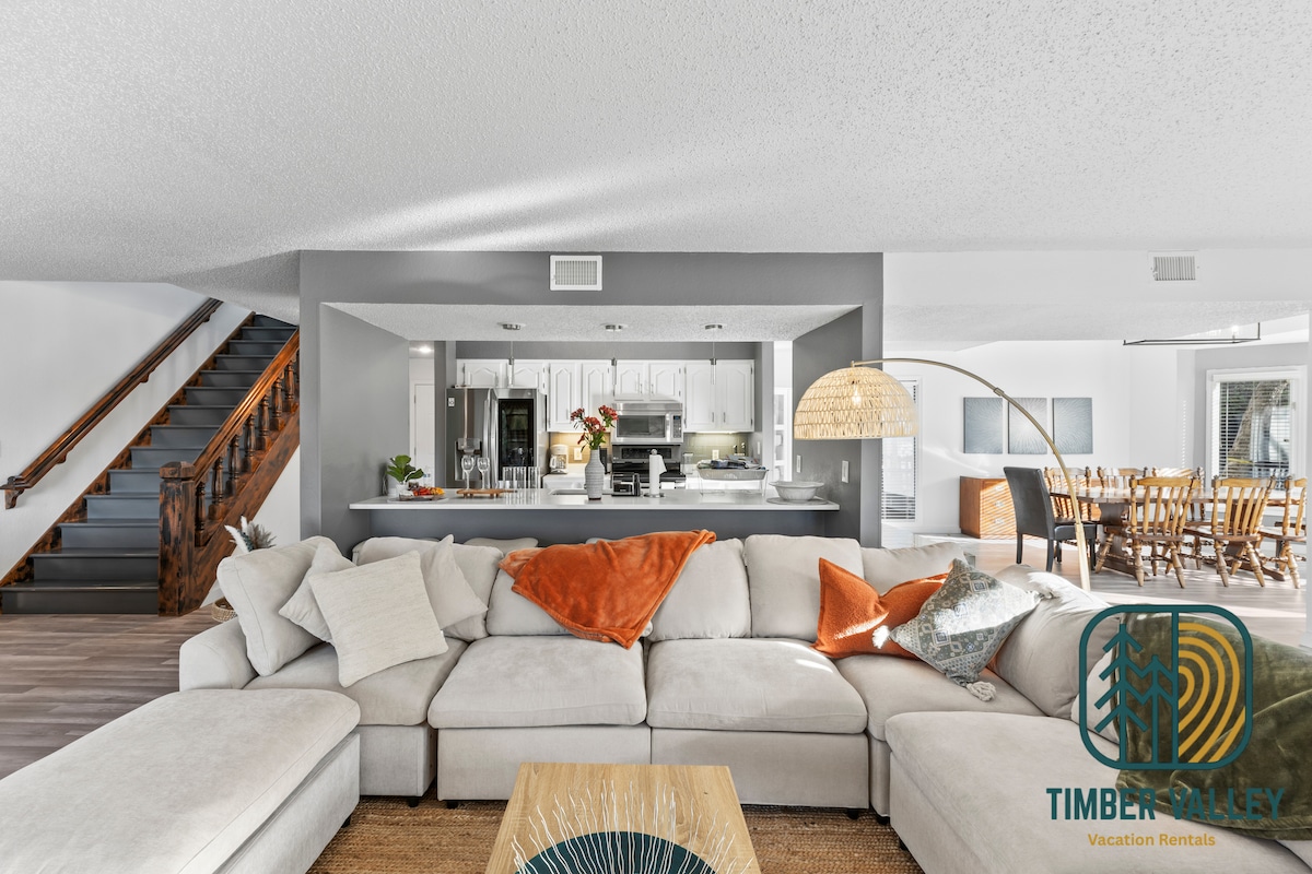 Enjoy a stylish experience at this centrally located home next to Margaritaville. This beautiful 3-bedroom, 3-bathroom home with spacious open floor plan with stylish furnishings. Offering a mainfloor master bedroom with a king and private bathroom. The other 2 bedrooms both have 2 full beds each with a private bathroom. Full kitchen with stainless appliances and well equipped with all your needs. Large deck area for grilling and great views. Head to Margaritaville and enjoy all the fun!