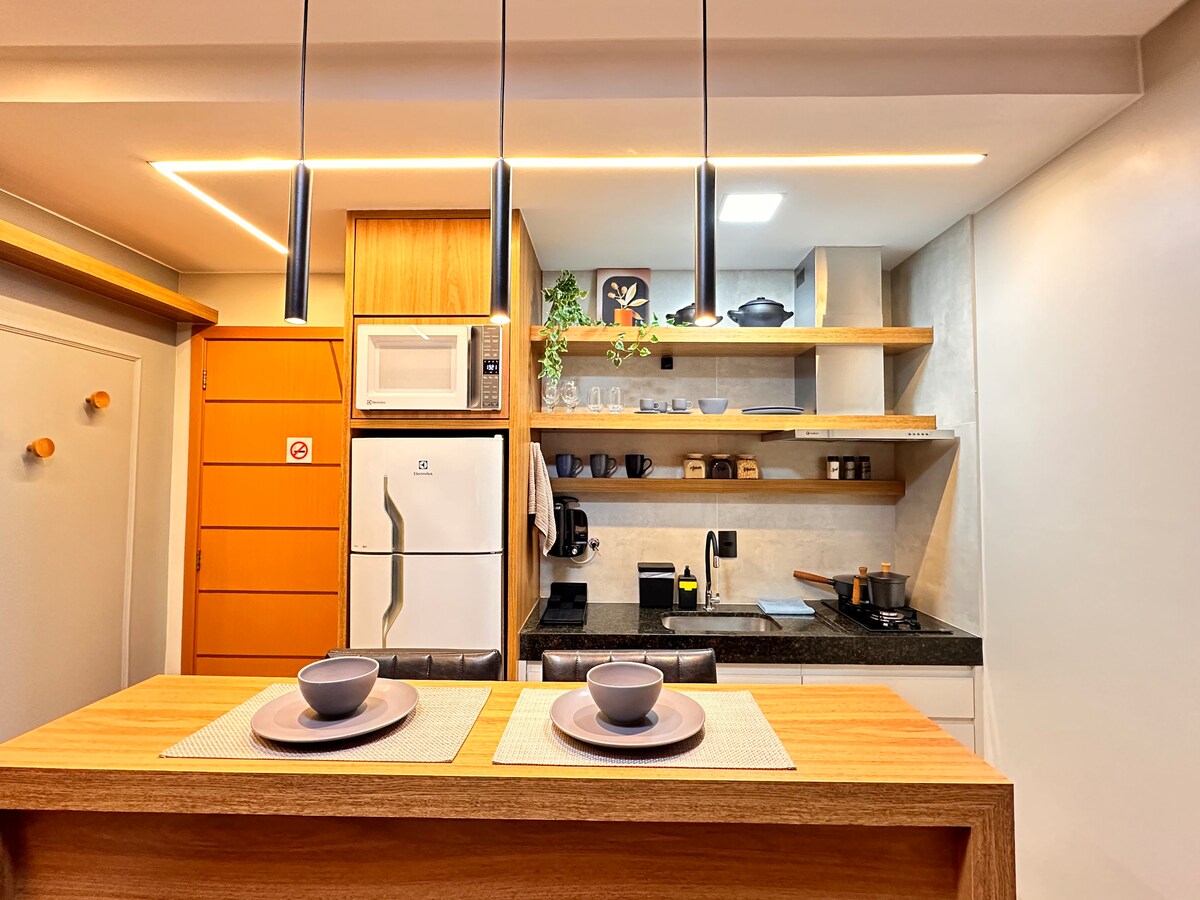 Ամբողջական բնակարան Jardim Goiás - ում: Սենյակ ՝ մեծ մահճակալով, օդորակիչով և պատշգամբով ։ Սենյակ հետ կանչվող բազմոցով, SmartTV - ով և օդով ։ Սառնարանով, գազօջախով, միկրոալիքային վառարանով և սպասքով հագեցած խոհանոց ։ Արտոնյալ վայրը ՝ Ավ. Jamel Cecílio, Shopping Flamboyant - ի հարևանությամբ և շրջապատված ռեստորաններով, շուկաներով, մարզասրահներով և զբոսայգով: Հեշտ մուտք դեպի BR -153 և քաղաքի հիմնական անցուղիներ ։ Հարմարավետություն և գործնականություն ՝ բարձր ստանդարտով ։
