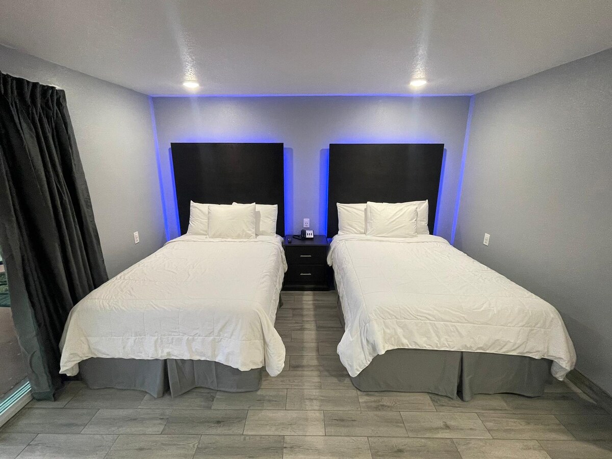 2-bedroom PRIVATE apartment suite with a full-kitchen including all cookware/utensils, and 3 TV's. This suite includes 5 beds total: 2 Kings and 3 Full-Sized beds. Sleeps up to 10 persons maximum. Also available is a great fitness center and guest laundry rooms so that you can wash/dry clothing during your stay. Wi-Fi is free and fast. You can pick up keys easily as our Front desk staff is on-site 24-hours per day and speaks English, Spanish, and Portuguese.