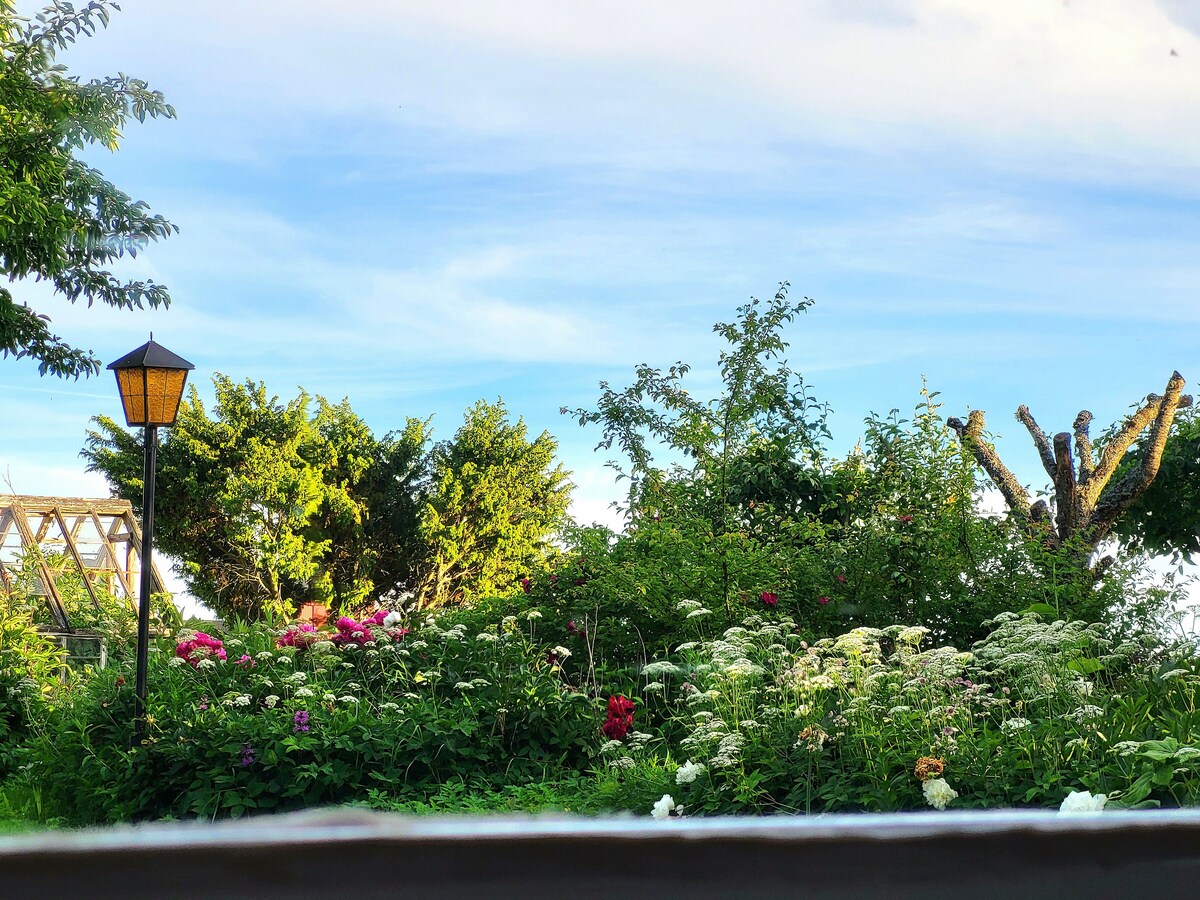 Քոթեջն ունի մեծ այգի ՝ թարմ բանջարեղենով, մարգագետնով և շատ ծաղիկներով ։ Անտառը հարևանությամբ է և շատ հարուստ է թռչունների կյանքով, հապալասով և սունկով ։ Հողամասը գտնվում է բլրի վրա, և դուք կարող եք հեծանիվ վարել դեպի ծով 15 րոպեում ։ Մթերային խանութը գտնվում է 4 կմ հեռավորության վրա: Նաև կարող եք մեքենայով հեշտությամբ հասնել Norrköping, Söderköping և Kolmården Zoo ։ Սա իմ ամառային տունն է, բայց եթե երկուսից ավելի եք, ամբողջ տնակը կստանաք ձեր տրամադրության տակ, այլապես դա կարելի է անել նաև համաձայնությամբ: Ջերմորեն ողջունում ենք: