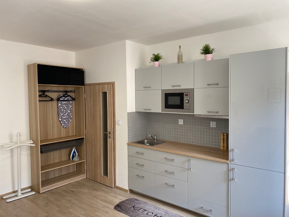 Hrabůvka Living is a modernly furnished apartment offering a fully equipped space that provides the comfort and convenience of home. • Great location: Situated in the quiet neighborhood of Hrabůvka, with easy access to the center of Ostrava. The area is well connected by public transport. • Ideal for both leisure and business stays: The apartment features a fully equipped kitchen, high-speed internet, and other amenities, making it perfect for individuals and couples.