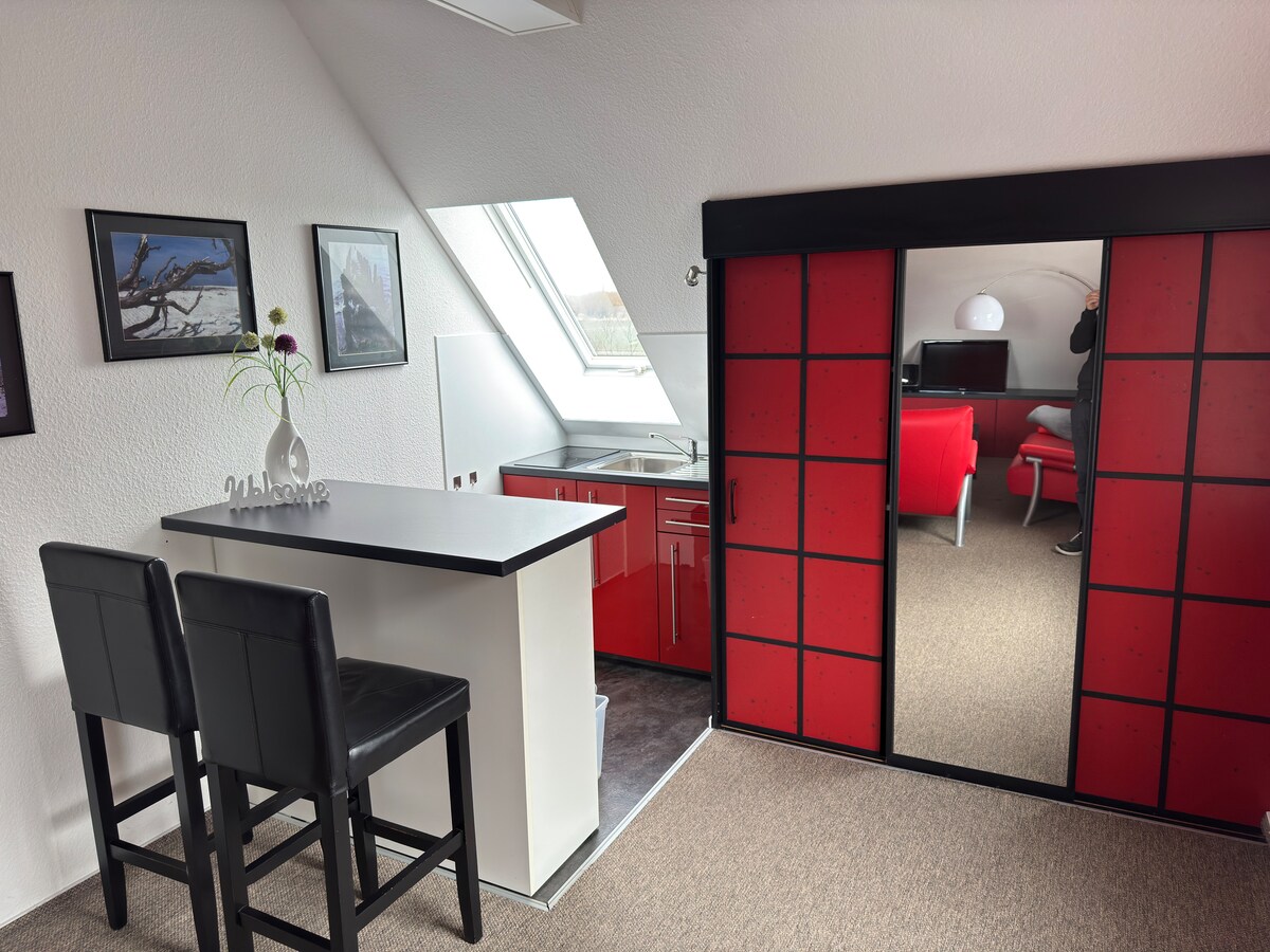 Բաց, լուսավոր ձեղնահարկով բնակարանը կատարյալ հանգիստ է Ռոստոկում մնալու համար ։ Ռոստոկ - Կասեբոհմ բնակելի տարածքի եզրին գտնվող վայրը նույնպես հիանալի հիմք է, որտեղից կարելի է հեծանիվով կամ հասարակական տրանսպորտով ուսումնասիրել քաղաքը կամ հարակից տարածքը: Գնումների և ավտոբուսի կանգառը մոտ 5 րոպեից ոտքով հեռավորության վրա է ։ Բնակարանը կատարյալ է նրանց համար, ովքեր ցանկանում են ընդամենը մի քանի օր կամ նույնիսկ մի քանի շաբաթ անցկացնել քաղաքում ։