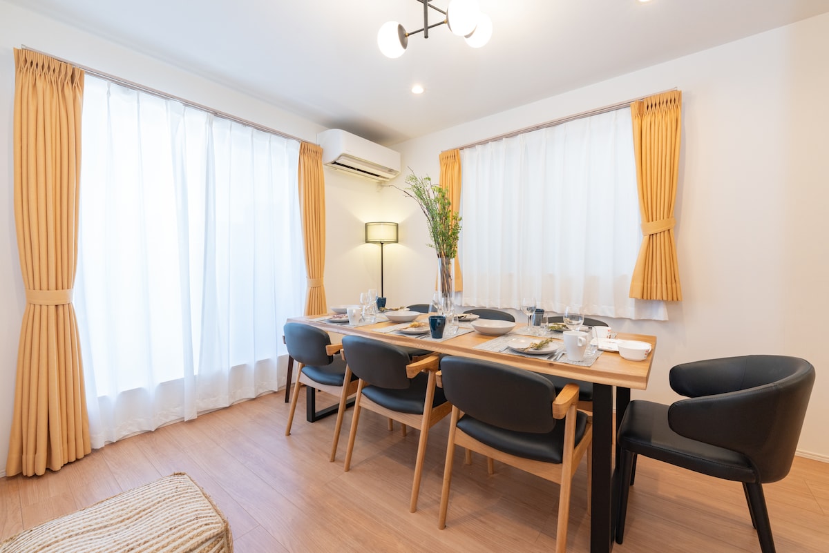 Բացվեց 2025 թ․ ամառը✨ Մեծ զեղչեր հունվարին «Հյուրերի ընտրություն» մրցանակ՝ բացումից 2 ամիս անց և սուպերտանտեր՝ 6 ամիս անց. վստահելի և բարձր գնահատված Airbnb-ի կողմից։ Հաջորդ ՆԱԳՈՅԱ-ն լավագույն 10% տների շարքում է։ 4 րոպե՝ Նագոյա կայարան, 3 գնացքի գիծ, մոտակայքում՝ խանութներ։ LEGOLAND և Ghibli Park՝ 45 րոպեի ընթացքում։ Նոր վերանորոգված 2LDK առավելագույնը 9 հյուրի համար, լիակատար առանձնություն, անվճար լվացքի մեքենա և արևասենյակ։ Հարցրեք երկարաժամկետ ամրագրման զեղչերի մասին ։
