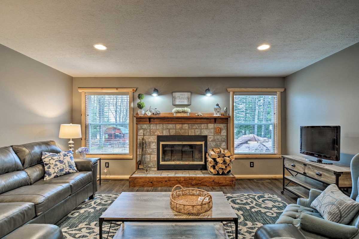 Փախեք դեպի այս շքեղ լճի ափին գտնվող այս շքեղ հանգստի վայրը, որը գտնվում է մասնավոր լճի ափին ։ Լիովին կահավորված այս ապաստարանն առաջարկում է մեկուսի առանձին լողափ, որը կատարյալ է խաղաղ տեսարաններով և հանգիստ խաղաղությամբ թրջվելու համար ։ Տան ներսում կա 4 BR, 3 ամբողջական բակալավրիատ և երկու ընդարձակ բնակելի տարածք, որոնք բավականաչափ տեղ են տրամադրում հանգստի և ժամանցի համար ։ Դուրս եկեք, որպեսզի հանգստանաք փաթաթված տախտակամածի վրա, ուսումնասիրեք ընդարձակ բակը կամ հավաքվեք բուխարիի շուրջը և ընկղմվեք այս մեկուսի օազիսի հանգստության մեջ ։