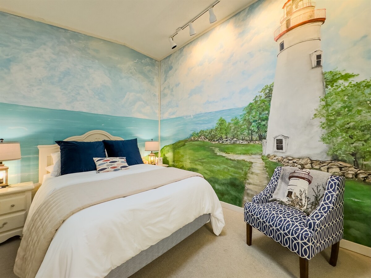 ** Փարոսի սենյակ** (Սենյակ 6) Բարի գալուստ «Փարոս» սենյակ ՝ հանգիստ հանգիստ, որտեղ ներկայացված է Էրի լճի Մարբլհեդ փարոսի ցնցող որմնանկարը ։ Այս հարմարավետ սենյակում կա երկտեղանի մահճակալ ՝ ծովային դեկորով, լապտերների ոճի լամպերով և հարմարավետ բազկաթոռով ։ Առանձին լոգասենյակում կա ցնցուղի լոգարանի համադրություն և փարթամ սրբիչներ ։ Վայելեք ինքնասպասարկվող մայրցամաքային նախաճաշը աշխատանքային օրերին և տաք նախաճաշը հանգստյան օրերին: Կատարյալ է ռոմանտիկ հանգստի կամ խաղաղ հանգստի ՝ Լույսի համար