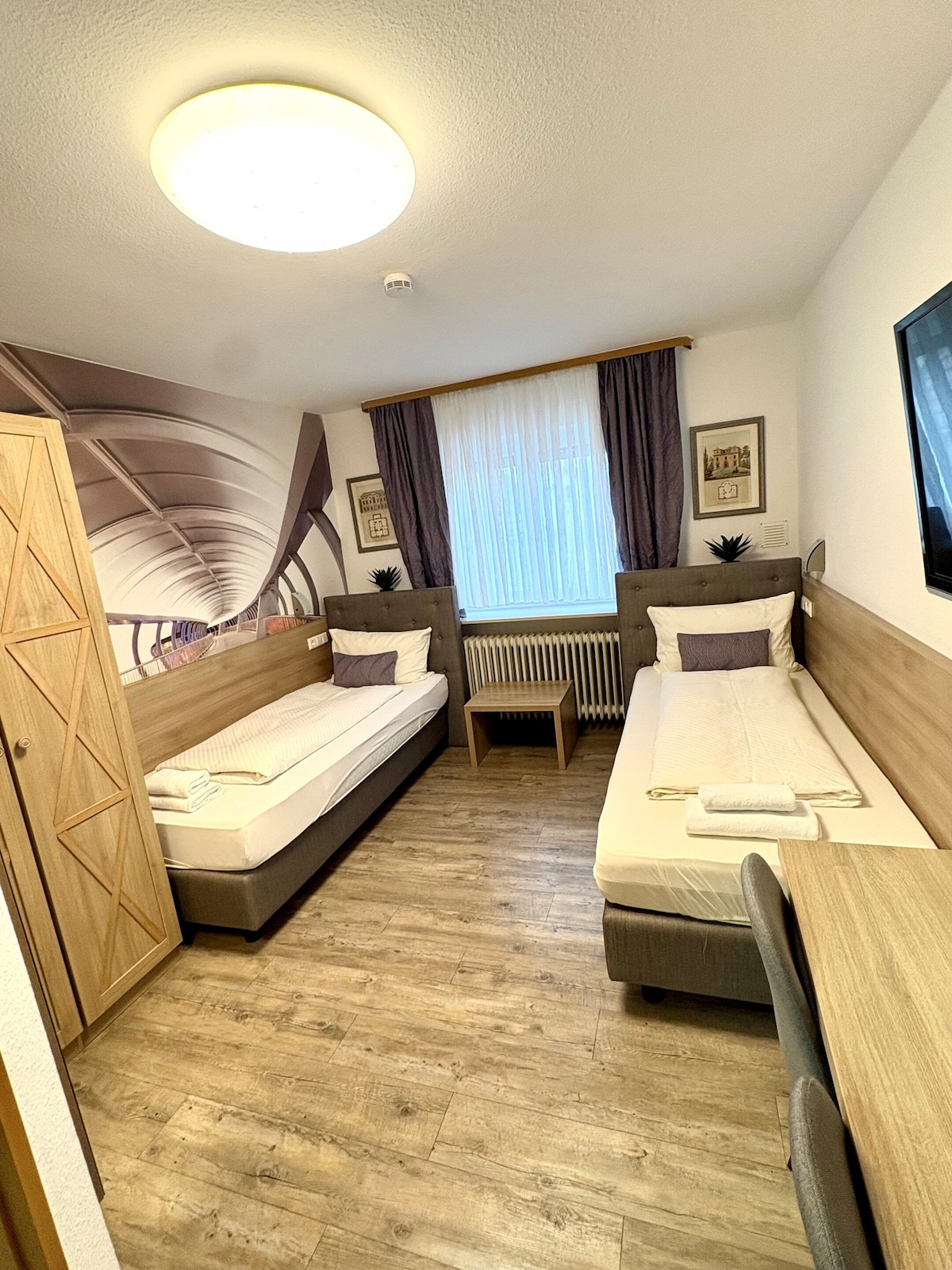 Komfortable Zimmer & Raum Entdecken Sie unsere eleganten Unterkunftsmöglichkeiten und finden Sie den perfekten Raum für Ihren Aufenthalt. Alle Zimmer verfügen über ein Badezimmer mit Badewanne und/oder Dusche, Kabel-TV/Radio und kostenloses WLAN. Die meisten Zimmer sind mit Teppichboden ausgelegt, einige verfügen über Parkettboden. Anreise: ab 14:00 Abreise: bis 11:00