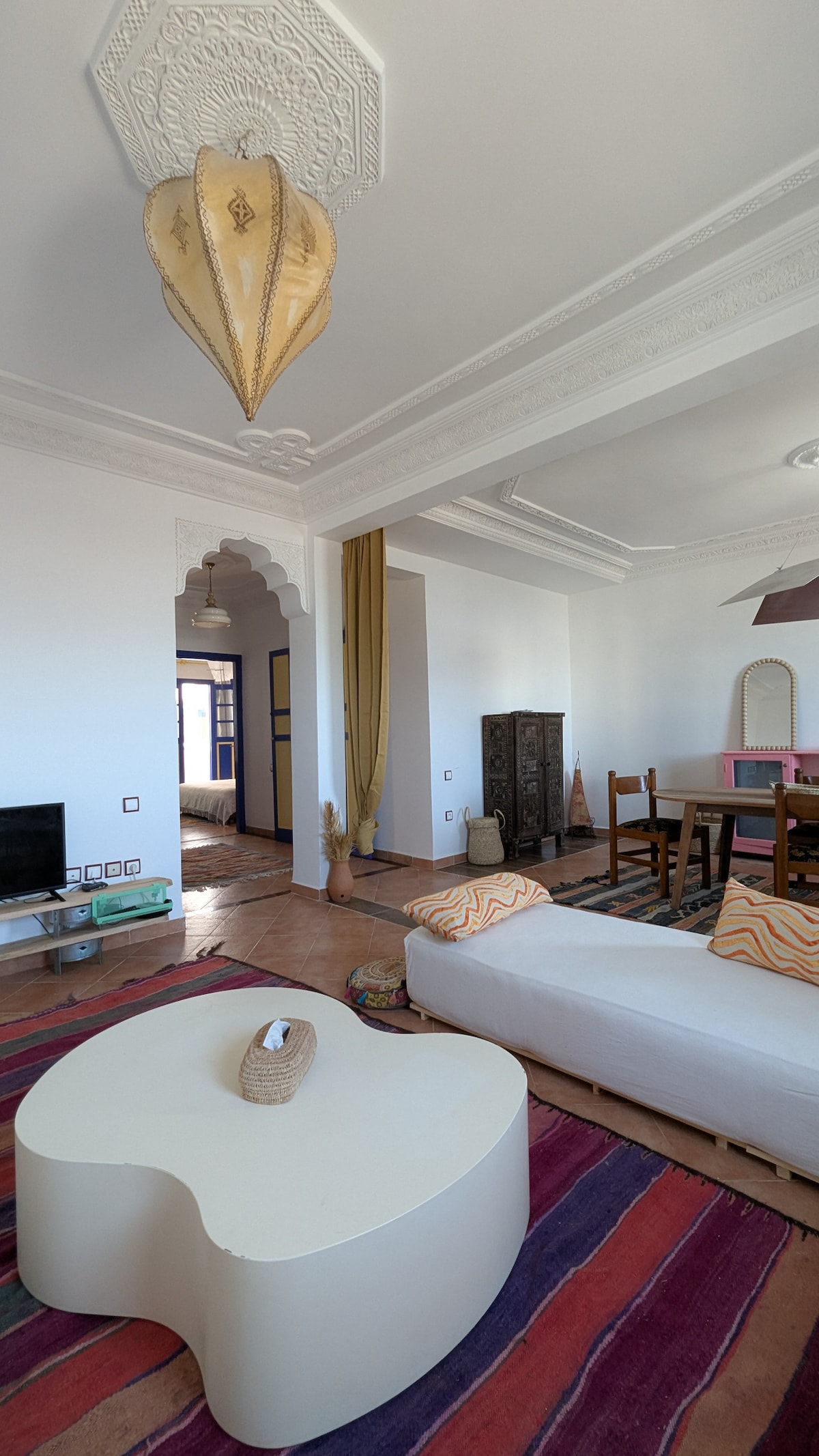 Modern 2-bedroom apartment in Sidi Kaouki, just a few steps from the surf beach. Bright living room, fully equipped kitchen, and a cozy atmosphere ideal for families, couples, or friends. Enjoy the sea breeze, surf the waves, or relax in a calm seaside village while being close to Essaouira’s vibrant culture. The perfect blend of Moroccan charm and modern comfort for an unforgettable stay
