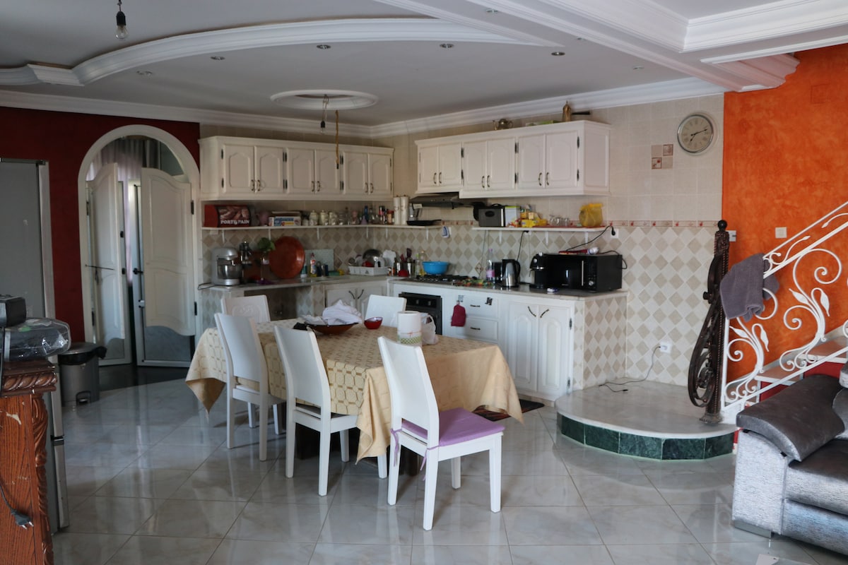 Profitez d’un séjour inoubliable dans notre villa familiale avec 2 piscines privées, un grand salon lumineux avec vue piscine, chambres confortables, climatisation et cuisine moderne équipée. Idéal pour familles et groupes en quête de détente et de nature à Timgad.