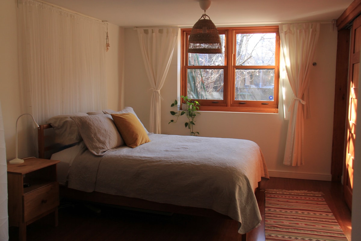 Relax and reconnect as a couple in this stunning 1-bedroom apartment in the heart of Mile End! Our apartment, only accessible by the stairs, is perfect for couples looking for a convenient and affordable place to stay in Montreal. The apartment is located in the lively Mile End neighbourhood, just steps from some of the best restaurants, bars, and cafes in the city.