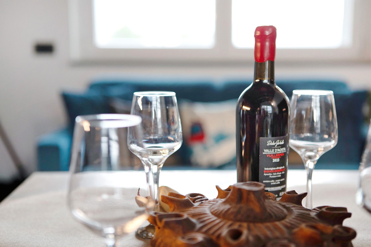 Երկրորդ հարկում գտնվող ամբողջ բնակարանը ՝ կանաչապատ տարածքներով շրջապատված փոքր կոնդոմինիումում ։ Ընդարձակ և հարմարավետ 10 րոպե Աոստայի կենտրոնից և ճոպանուղու մեկնումից մինչև Պիլա լեռնադահուկային հանգստավայր Առկա է բարձր աթոռ և մանկական սպասք Ինքնուրույն ժամանման հնարավորություն Հեծանիվ, դահուկներ և այլն: Հնարավորություն Aosta - ի կենտրոնից 10 րոպե պակաս հեռավորության վրա, որտեղ հունվարի 30 - ին եւ 31 - ին տեղի է ունենում հազարամյա Sant'Orso Fair - ը