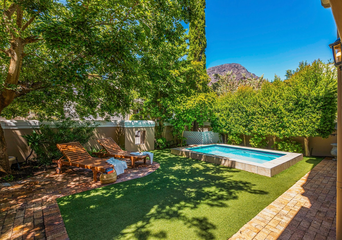 Featuring views of luscious gardens, Table Mountain and the ocean, this accommodation offers an outdoor patio leading to a communal swimming pool. The apartment also provides free WiFi, DSTv, and free parking. The aparement has a flat-screen TV, a fully equipped kitchen with an oven and a microwave, and a private bathroom with walk-in shower and a hair dryer. We are a function venue and do have events from time to time on the lawn and at the swimming pool.