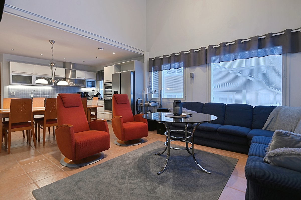 Հանգստի հարմարավետ տուն Լևիի լավագույն վայրում։ Մեր եռասենյական բնակարանը հիանալի է չորս հոգու համար։ Մոտակա լեռնադահուկային լանջը գտնվում է ճամփեզրին։ Դուք կարող եք սկսել դահուկավազքը գրեթե շքամուտքից։ Մեր բնակարանում վերջերս վերանորոգվել են հատակը, խոհանոցը, լոգասենյակը և զուգարանը։ Անձնական սաունան և բուխարին հարմարավետ միջավայր են ստեղծում։ Եթե ուզում եք, որ ձեր հանգիստը հեշտ լինի, մնացեք մեզ մոտ։ Բոլոր ծառայությունները հասանելի են։