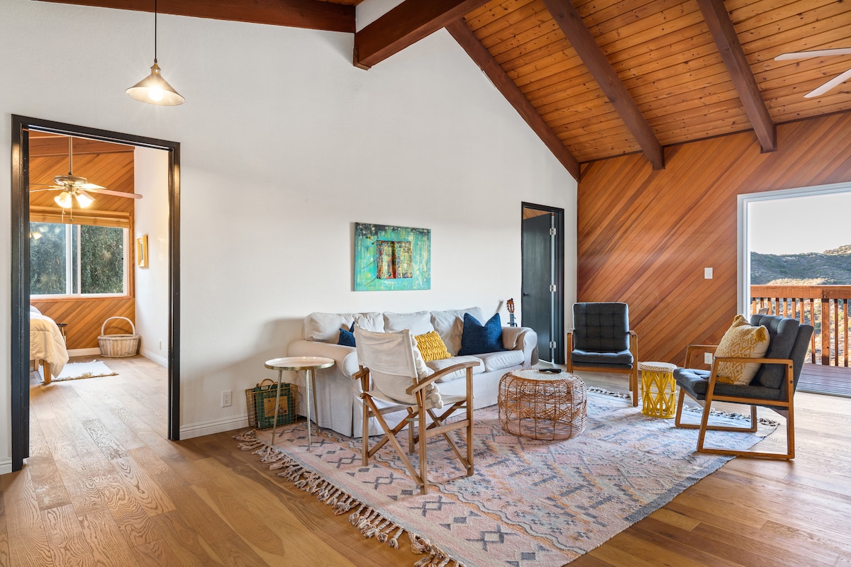 Հմայիչ Robin's Nest, Vintage կցասայլակներ ընդլայնված Topanga ոճը փոքրիկ տանը, հաճելի պարսպապատ բակ խորոված, ստվերում եւ լաունջ seating. անհավատալի տեսակետները Santa Monica լեռներում, վրա 4 ակր, քայլում հեռավորությունը Topanga պետական այգում. Բուգի տախտակներ, լողափի սրբիչներ ՝ Տոպանգա լողափ կարճ ուղևորության համար ։ Հանգստացեք, մասնակցեք տեսարաններին, մեկուսի, կատարյալ է Տոպանգայի գաղտնի լողավազանների անցքերն ուսումնասիրելու համար, գարնանային ծովախորշ, արշավային/հեծանվային արահետներ: Գրքեր, սեղանի խաղեր, գլուխկոտրուկներ և այլն, երբ մեր հավերը թարմ ձու են դնում: