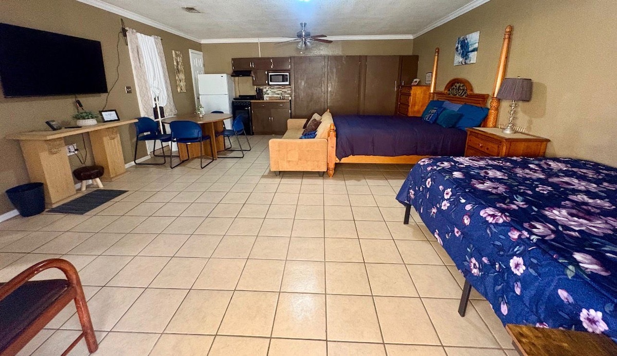 Բարի գալուստ։ Մեր 400 քառ․ ֆուտ տարածքով ստուդիա-քոթեջն ունի ամբողջական խոհանոց և լոգասենյակ։ Լավ կահավորված հյուրասենյակում կա 152 սմ մահճակալ, քնելու հնարավորությամբ բազմոց և 55 դյույմ հեռուստացույց։ Բाहրսի բնակելի տարածքում կա գազօջախով գրիլ, ճաշասեղան, հարմարավետ պատիո աթոռներ և մեծ ծառեր, որոնք ստվեր են տալիս։ Տարածքը հանգիստ և հարմարավետ է։ Օուշն Դրայվը 5 րոպե քայլելու հեռավորության վրա է։ Գտնվում է խանութների և ռեստորանների կենտրոնում։ 3 րոպե մեքենայով մինչև TAMUCC։ 15 րոպե մեքենայով մինչև լողափերը։ Շներ են թույլատրվում (առավելագույնը 2)՝ տնային կենդանիների համար սահմանված վճարով։ STR թույլտվություն #205144