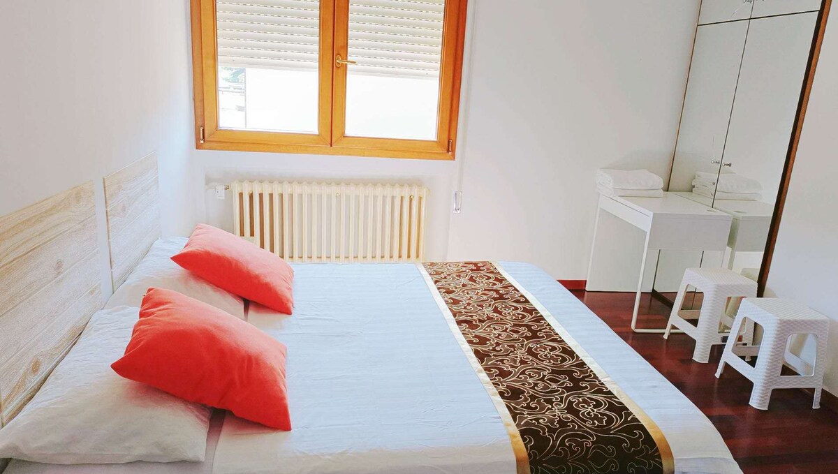 Convenient transportation, only a 5-minute walk from Venice Mestre Train Station! There is a bus stop downstairs that goes directly to Venice, and there are supermarkets, restaurants and other living facilities around! We have a very beautiful and healing balcony, which can make you feel particularly relaxed during a tiring journey!