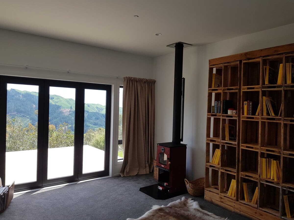 Հանգստացեք, հանգստացեք մեր լեռնային հեծանվային այգում: Առավելագույն խաղաղություն և հանգիստ բլրի գագաթին, որտեղ չկան տեսարաններ ։ Հանգստանալն ավարտելուց հետո կարող եք գնալ լեռնային հեծանվով զբոսնելու և ընտրել 20 ուղիներից մեկը ։ Ցուրտ է ։ Խնդիր չկա, հրդեհը ժամանելուն պես պատրաստ կլինի վառելու ։ Պանրի տախտակը և գինին մատակարարվում են, երբ ժամանում եք, և տեղական արտադրության/ NZ - ի նախաճաշի զամբյուղը կազմել է ձեր այցի մեջ ներառված բոլոր մթերքները ։ Մի մոռացեք աներևակայելի տեսարանով ջակուզիի մասին ։