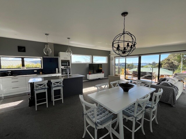 This newly built, architectural home is a modern, three level house with an incredible connection to the opua forest. Open the bi-fold doors and take a deep breath of the refreshing forest air and soak in the calming hues of green. With the Bay of Islands at your doorstep this house will provide you with everything you need to come back and rest and recover after a day spent exploring the beaches, wineries, islands, bush walks, fishing and much more this incredible location has to offer.