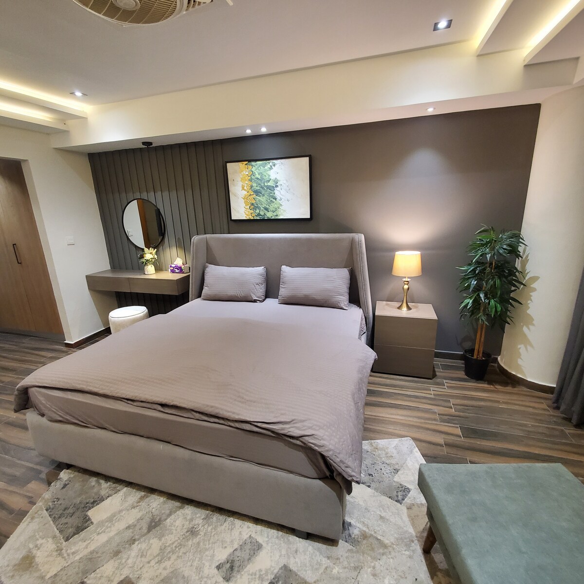 The Grey Loft apartment, located in Bahria Town Phase 1, at discounted prices exclusively for our new guests! ~ Spacious and thoughtfully designed, it is a warm and welcoming space for families, couples, or business travelers. ~ The location is in the heart of Bahria town with Bahria Active right beside it ~ Guests will have easy access to a Pool, Sauna and Gym. (separately paid) ~ You can enjoy both relaxation and fitness during your stay. ~ Cleanliness is our top priority at the Grey Loft.