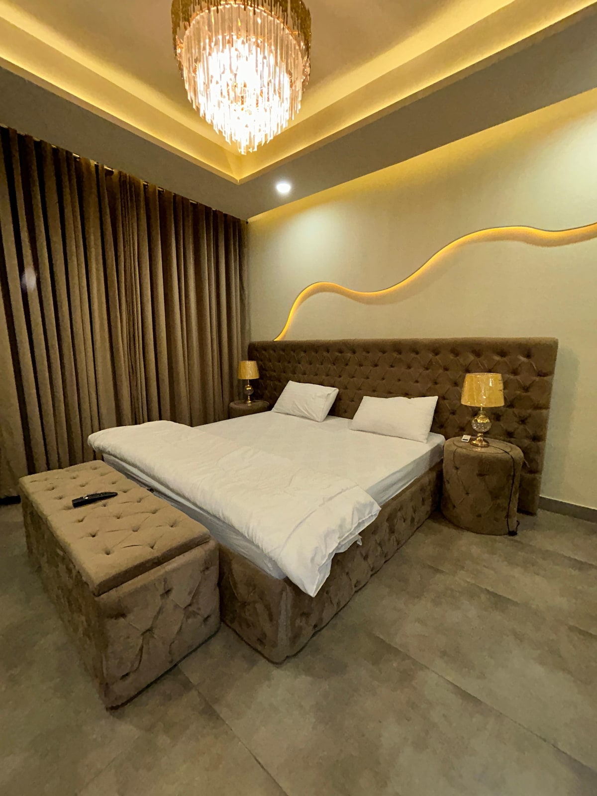 Welcome to Daró — a boutique, design-forward 1-bed apartment in the heart of Zameen Aurum, Gulberg III. Thoughtfully crafted with soft tones, modern furnishings and a calm hotel-like ambience, this space offers a private balcony, a stylish lounge with a 55” LED, a fully equipped kitchenette, fast WiFi, fresh linens, and 24/7 hot water. Ideal for married couples, business travelers, weekend escapes and long-term stays seeking comfort, convenience and a truly elevated experience in Lahore. 🌙✨