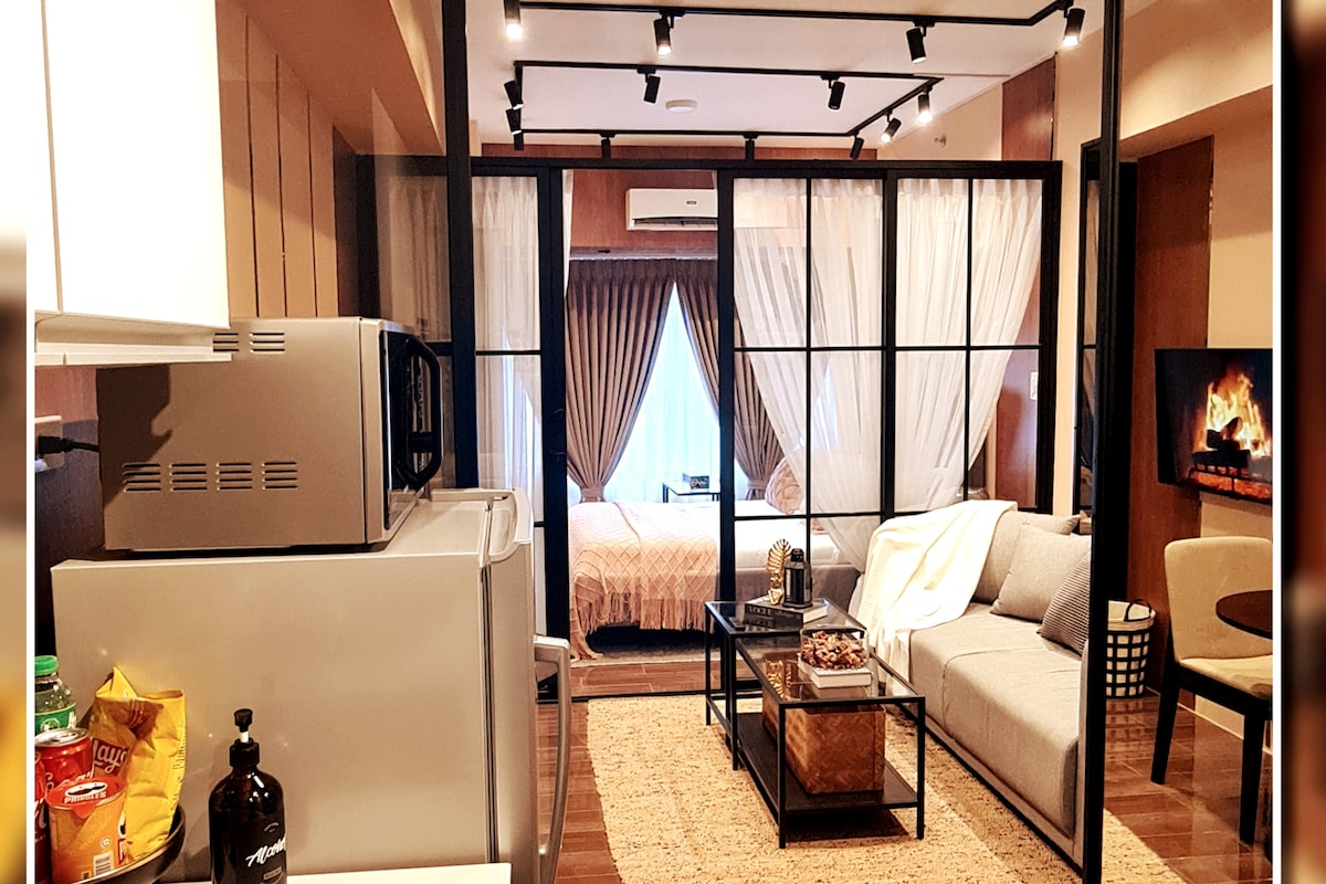 Վայելեք ձեր կարճատև կամ երկար այցը իմ շքեղ 1 ննջասենյակի լոֆթում ՝ պատշգամբով, որը փայփայում է ձեր արձակուրդներին կամ ազատ ժամանակ հարմարավետ մեծ մահճակալում կամ հարմարավետ կաշվե բազմոցին, որը խաղեր է խաղում մեր Nintendo Switch կոնսոլում, դիտեք, օրինակ, Netflix - ի ֆիլմեր 55 դյույմանոց հեռուստացույցով կամ արդյունավետորեն աշխատեք արագ Wi - Fi - ի, տպիչի, սկանավորող համակարգի միջոցով: Զորամասը շքեղ կահավորված և կահավորված է: Հարկաբաժինը գտնվում է Մակատիում գտնվող SMDC ՕԴԱՅԻՆ բնակավայրերում ։