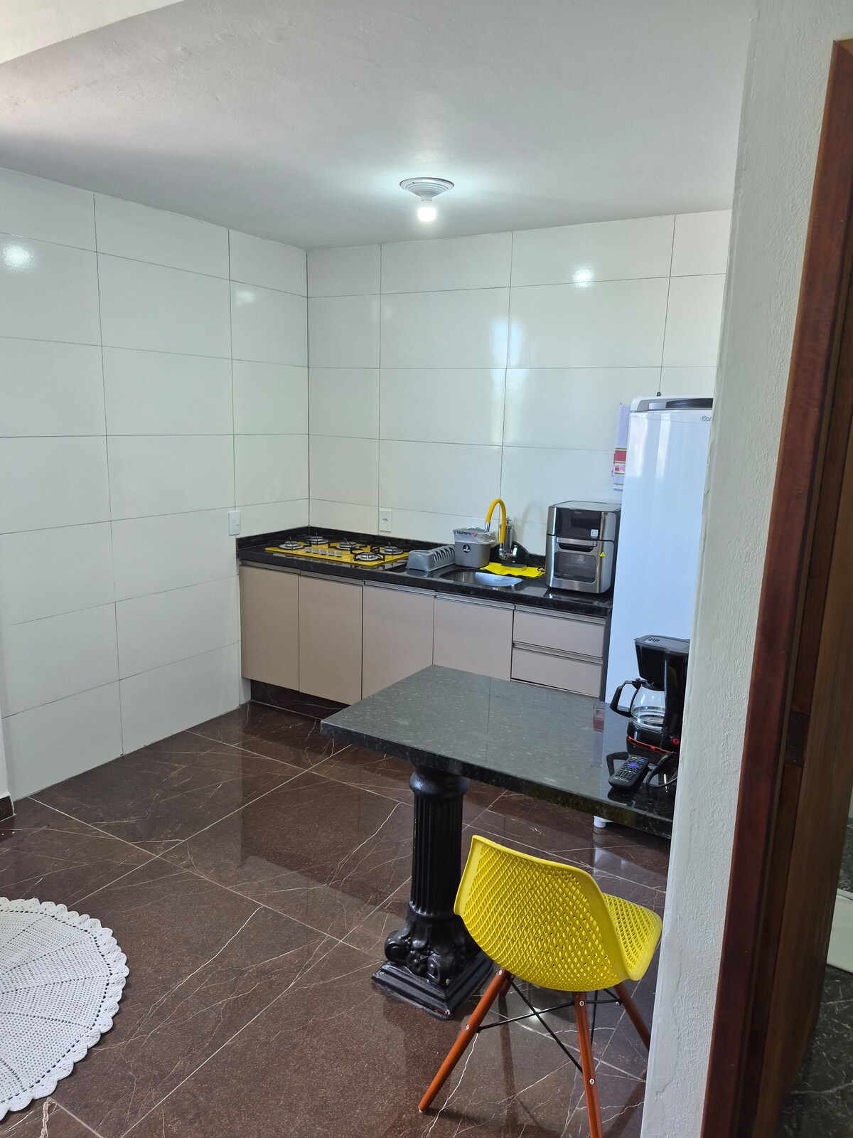 A Kit Térrea está localizada no andar térreo. Conta com cozinha compacta privativa (fogão, geladeira e pia) equipada com utensílios básicos (louças, talheres e panelas). Possui uma Smart TV com cama de casal, acomodando até 2 pessoas. Além de um banheiro privativo, a unidade também tem direito a uma vaga no estacionamento.