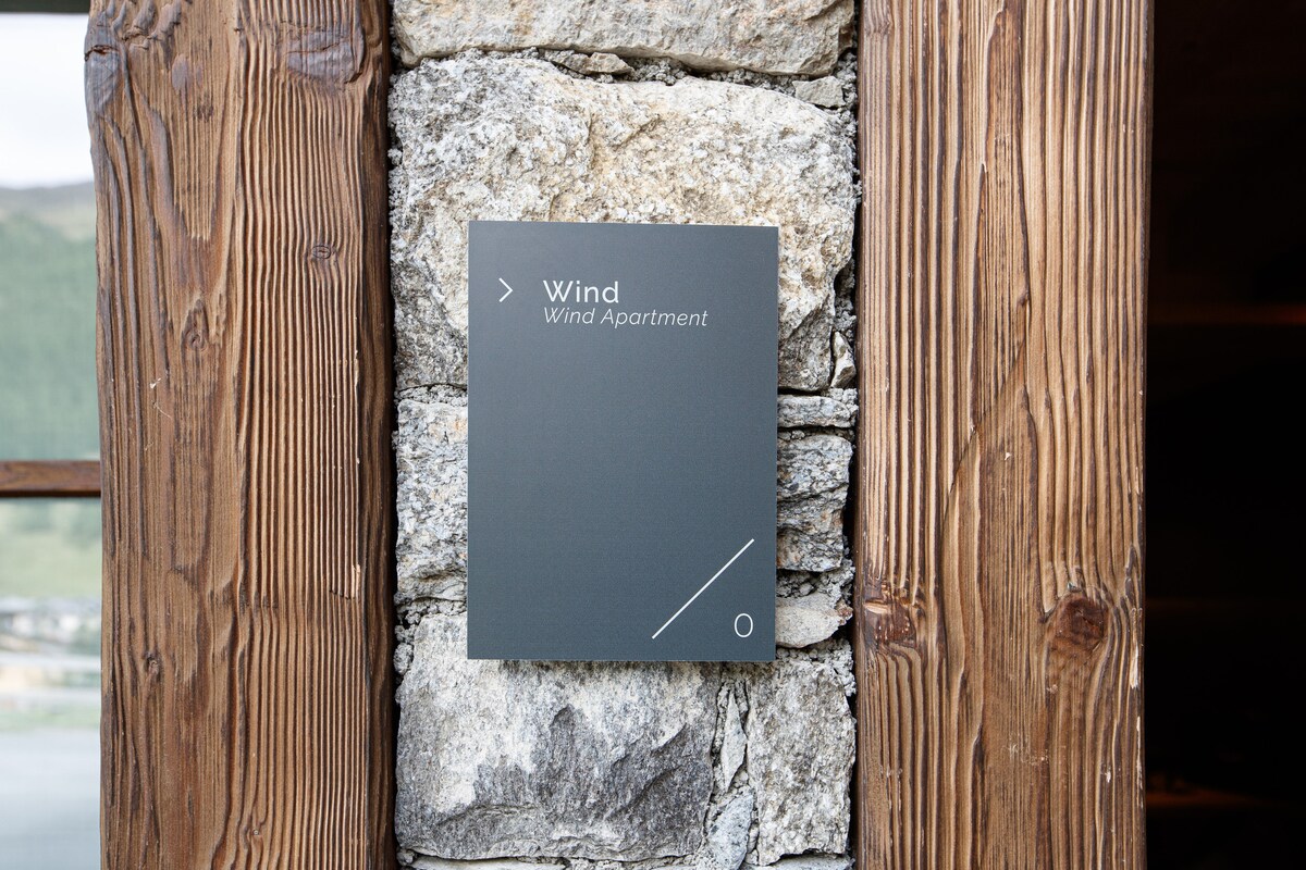 The Wind apartment is located within Villa Genf Mountain Apartments & Spa, which stands in the Livigno landscape in the early 1900s and reflects in every aspect the ideal of Livigno's historic stone and wood-clad chalet. Its name "Genf" comes from "Ginevra," daughter of the first buyer.