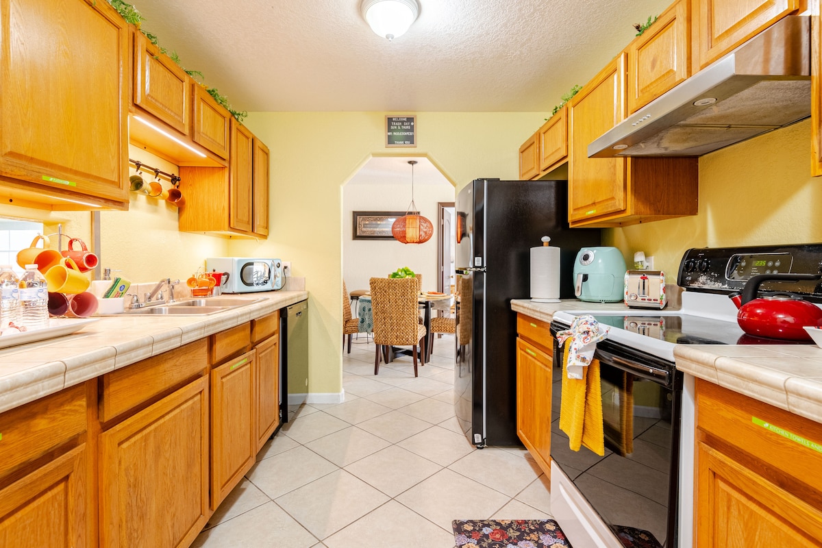 Մնացեք մեր 4 ննջասենյակով, երկսենյականոց տանը ՝ առանձին ջեռուցվող լողավազանով Eau Gallie քաղաքի սրտում, Մելբուրնի կենտրոնից ընդամենը 5 րոպե հեռավորության վրա և լողափից 5 րոպե հեռավորության վրա ։ Մեր բոհեմական ոգեշնչմամբ դեկորը տունը տալիս է հանգստացնող Ֆլորիդայի շունչ ։ Զվարճալի և հանգստանալու համար կան սեղանի խաղեր, ֆուբոլ, ցանցաճոճ և շրջակա միջավայրի լույսեր ։ Հարմարավետ մթնոլորտը կատարյալ է ինչպես մեծահասակների, այնպես էլ երեխաների համար, ունի մեծ տարածք ՝ ներսում և դրսում հանգստանալու համար ։ Լողավազանի ջեռուցիչը հասանելի է փոքր վճարով ։