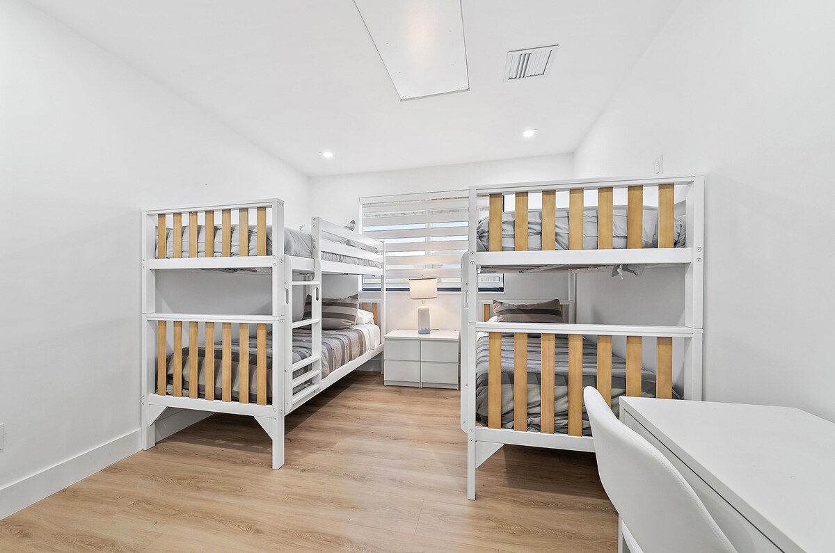 ⭐ Ձեր մասնավոր հանգստավայրը Հարավային Ֆլորիդայում ⭐ Փորձեք ձեր սեփական մասնավոր հանգստավայրը։ 🌴 Լողավազան, սաունա, սառը ջրով լոգարան ❄️, ջակուզի, բացօթյա թատրոն 🎬, տիկի բար և հսկայական զվարճանքի պատիո։ Ներսում՝ էլեգանտ դեկոր, 85 դյույմ հեռուստացույց, մերսող աթոռ և սրճարան։ Վեսթ Պալմ Բիչում գտնվող այս 3 սենյականոց օազիսը 8 հոգու համար նախատեսված է և միավորում է առողջ ապրելակերպը, զվարճանքը և շքեղությունը։ Անմոռանալի այցերի համար նախատեսված իսկական սրբավայր։ Russi Retreat - ում դուք ոչ միայն տուն եք ամրագրում, այլև ապահովում եք մասնավոր ապաստարան Հարավային Ֆլորիդայում ։ Ամրագրեք ձեր այցն այսօր: