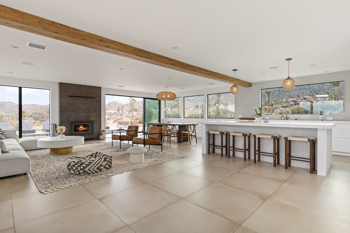 Սպա թեմատիկ անհատականացված կալվածք 30 ակր մակերեսով ՝ Ջոշուա Թրի կենտրոնից ընդամենը 4 մղոն հեռավորության վրա ։ Ներկայացված է Travel + Leisure - ում, Domino - ում, San Diego Mag - ում և այլն ։ Առանց անմիջական հարևանների ՝ դուք իսկապես կարող եք հանգստանալ ։ Նայեք հսկա պատուհաններին դեպի 100 - ից ավելի Ջոշուա ծառեր և ազգային պարկ ։ Հարմարությունները ներառում են բոլորովին նոր լողավազան և արևի տախտակամած, մեծ անհատականացված սաունա, սառը ջրասուզակ, 8 հոգանոց ջակուզի, առանձին յոգայի / խմբի ճաշասենյակ, բացօթյա ցնցուղ, շեֆ - խոհարարի խոհանոց, էլեկտրամոբիլի լիցքավորիչ, առանց ծխի բուխարի և մասնավոր սկավառակային գոլֆի դաշտ ։