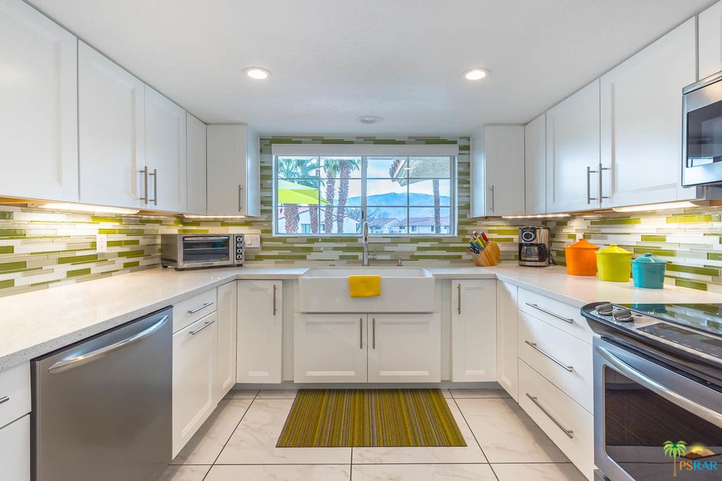 Enjoy a vacation getaway in the south of Palm Springs, minutes away from downtown! From the floors up - new porcelain tile floors, new double shower and vanity in the bathroom, brand new stainless steel kitchen appliances, cabinets, and backsplash. Also, everything you need for a week or monthly stay provided. 65” 4K LED TV w/ internet at 400Mbps, Sling TV, Netflix, Hulu, Amazon Prime Video, HBO, Showtime, and Starz, Nest thermostat, & August smart lock technology for security. City ID# 1696