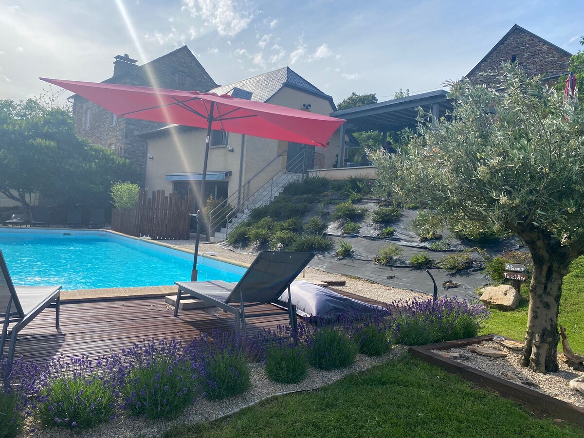 Ancienne maison entièrement rénovée, alliant le charme de l'ancien et le confort de la modernité. 4 chambres spacieuses, 1 salle de bain, 1 salle de douche. Grande cuisine équipée avec lave vaisselle, four, lave linge sèche linge, wifi fibre. Grande terrasse bien exposée avec salon et table de repas. Jardin clos avec table forestière permettant de manger à l'ombre des arbres, barbecue. Maison très au calme à 5 minutes de toutes les commodités. En plein cœur de l'Aveyron et de la vallée du Lot.