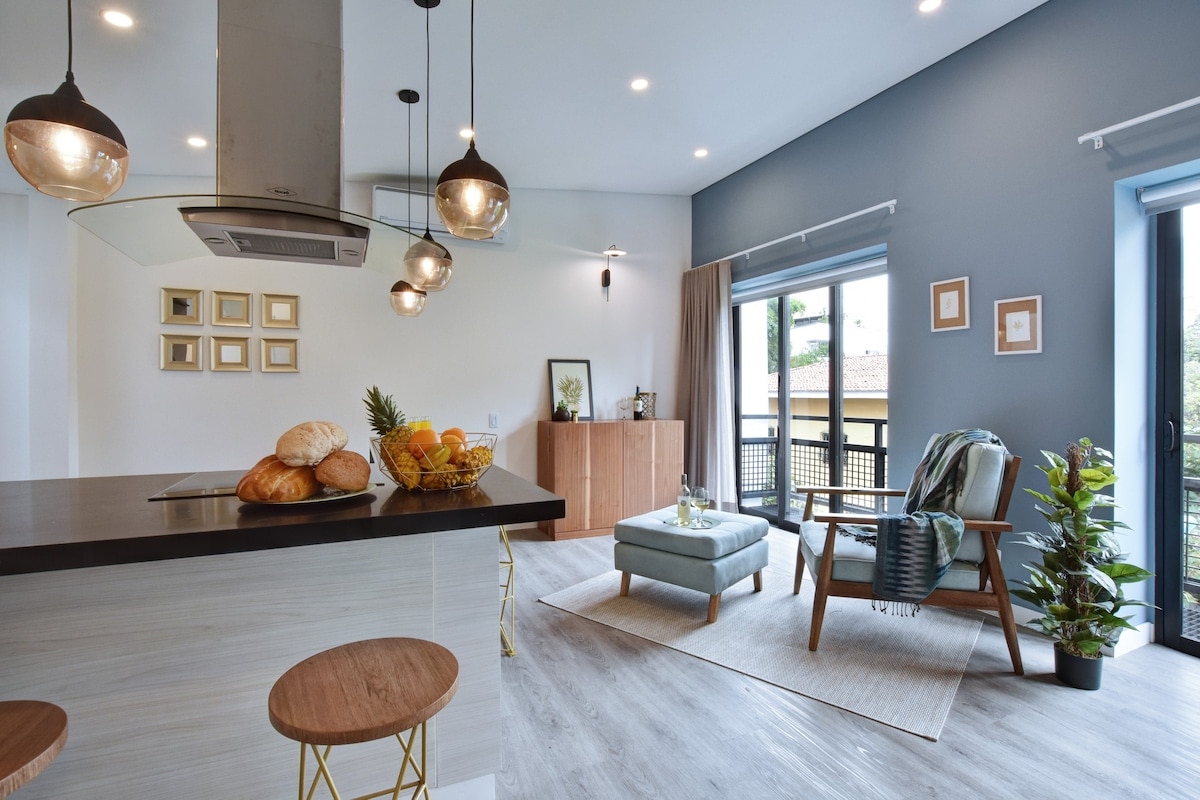 Ժամանակակից բնակարան՝ հեռավար աշխատանքով լեռների տեսարանով