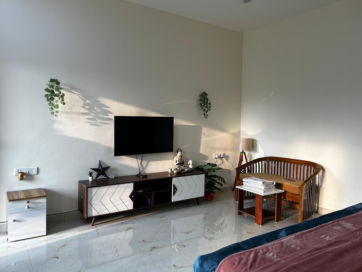 Բարի գալուստ Salaam Namaste Palolem ՝ շքեղ և ժամանակակից առաջին հարկ 1BHK, որը ձեզ տալիս է ինքնուրույն ժամանման և անվճար կայանատեղիի շքեղություն անմիջապես տնից դուրս: Քանդեք նորաոճ լոգարանը, միացրեք ձեր սիրած շոուները 55" Smart LED հեռուստացույցով ՝ Netflix - ից անվճար օգտվելու հնարավորությամբ, և պատրաստեք տնային կերակուրներ լիովին կահավորված խոհանոցում ՝ լվացքի հարմարություններով ։ Համտեսեք առավոտյան թեյ ՝ հիանալով փարթամ կանաչ բլուրներով հանգիստ թաղամասում ։ Մոռացա ՞ ք նշել, որ Պալոլեմ, Պատնեմ և Ագոնդա լողափերը րոպեներ հեռավորության վրա են ։