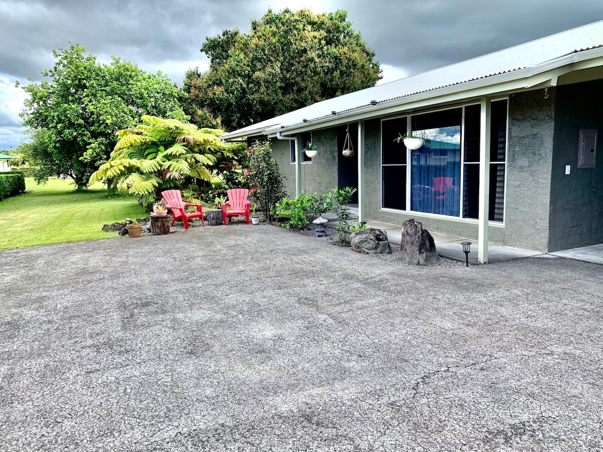 Հանգստացեք ընտանիքի և ընկերների հետ այս խաղաղ տանը, որը գտնվում է Հավայան դրախտային զբոսայգու գեղեցիկ ստորաբաժանումում: Այս նոր վերանորոգված երկու ննջասենյակով, մեկ լոգասենյակով տունն առաջարկում է մատչելի և հանգստացնող տուն ՝ տան բոլոր հարմարություններով: Այս հեյլն առաջարկում է արագ մուտք դեպի մեկուսի լողափնյա արահետ, The Cliffs կոչվող տեղական վայր և տեղական ֆերմերային շուկաներ ։ Ընդամենը մի կարճ ճանապարհ դեպի մոտակա Պահոա, Կեաո կամ Հիլո ՝ ուսումնասիրելու այն ամենը, ինչ առաջարկում է Puna - ն ։