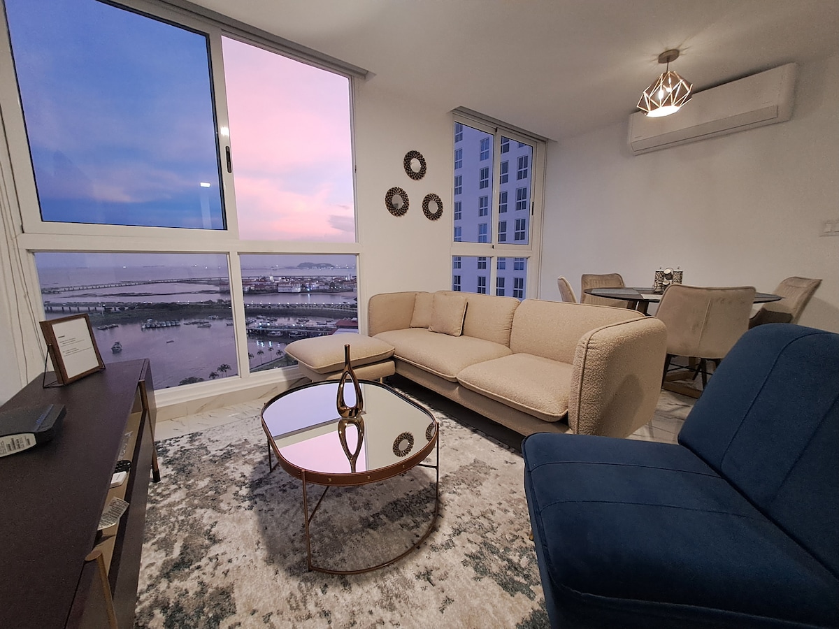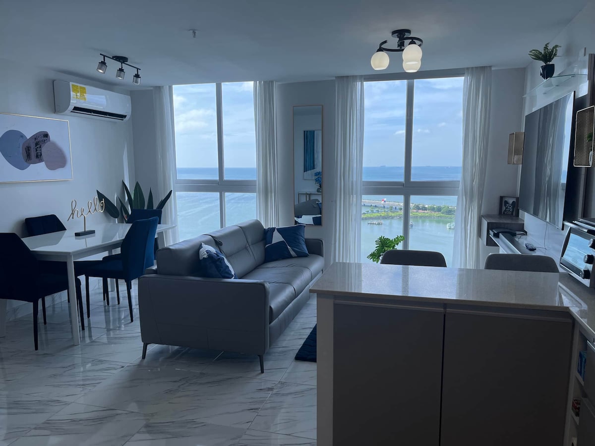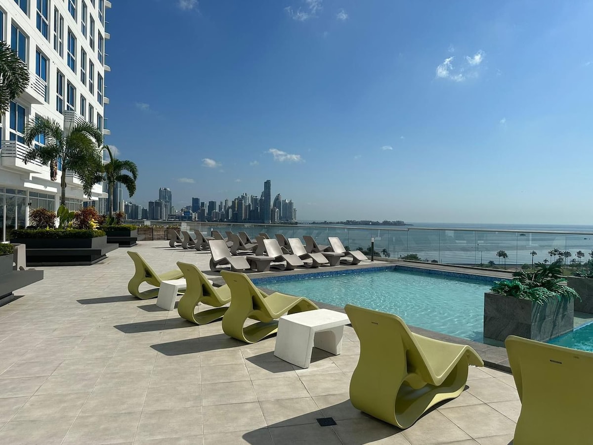 Արթնացեք օվկիանոսի հիասքանչ տեսարաններով այս ժամանակակից բնակարանում ՝ Բալբոա պողոտայում ։ Վայելեք անեզր լողավազան, 360° երկնագույն լաունջ, մարզասրահ, ռեստորաններ, համագործակցային տարածքներ և ժամանցի յուրահատուկ տարբերակներ: Պատմական թաղամասից, ափամերձ գոտուց և ծովամթերքի շուկայից ընդամենը մի քանի քայլ հեռավորության վրա ։ Կատարյալ է հարմարավետություն, դիզայն և Պանամայի ամենացնցող տեսարանները փնտրող ճանապարհորդների համար ։