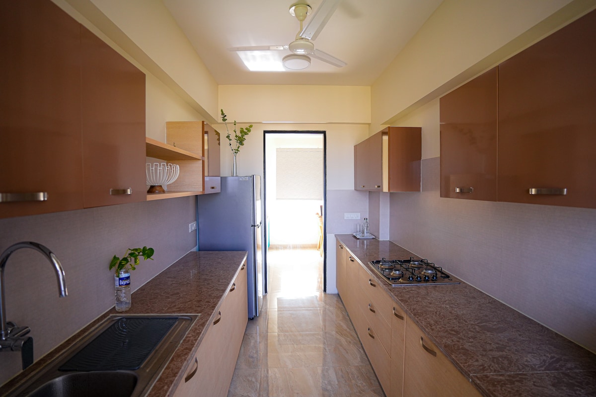 Luxe 3BHK |AC-Cafes-Ntflix-Kitchen-Balc|Nr Airport