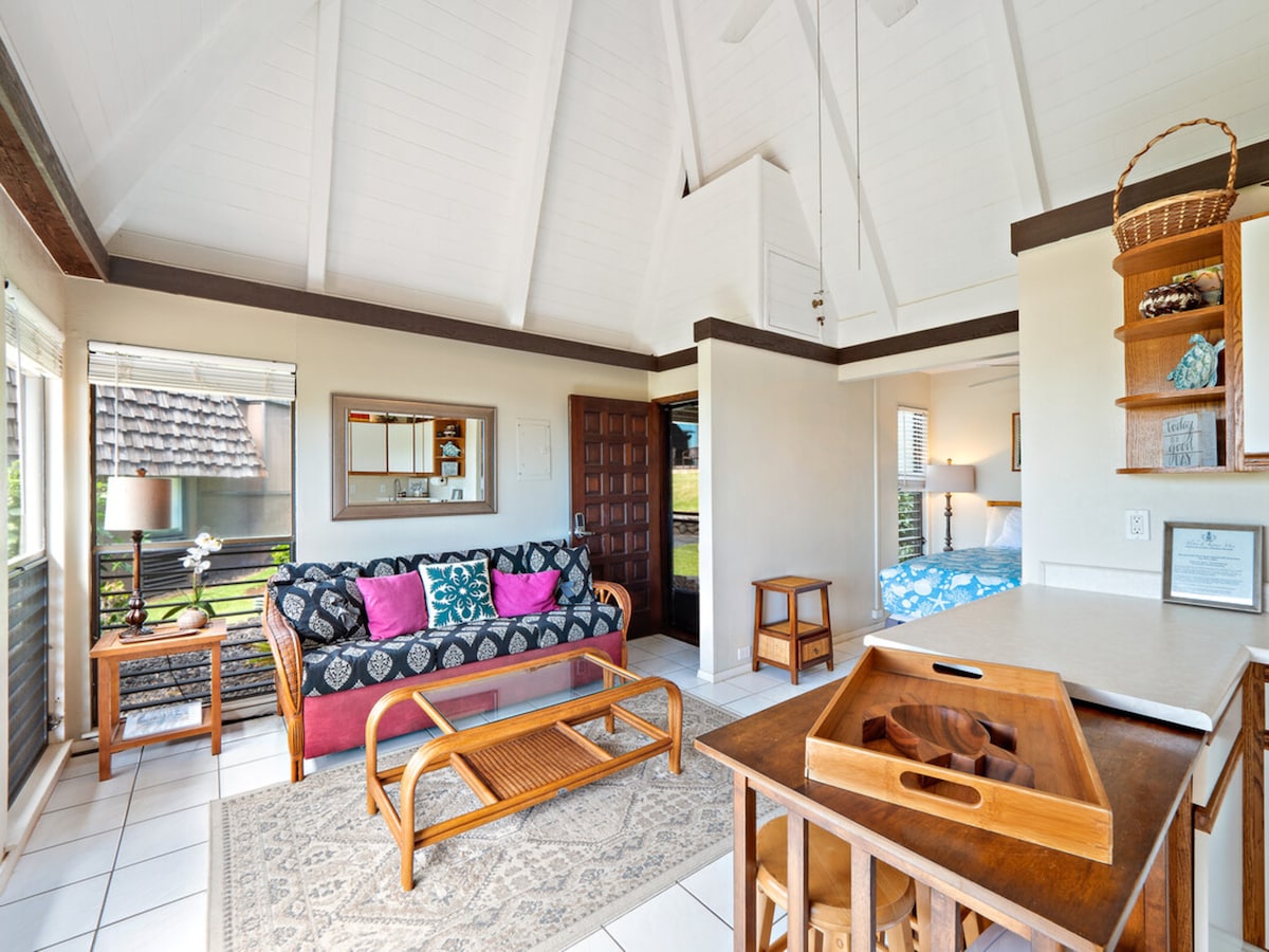 Kanaloa (God of the Sea creatures) over looks the Ocean, this room is 140 sq ft, with a queen bed, small table with chairs, no kitchen, large window to view Milky Way, sunrises, all while laying in bed. Kanaloa has its own private composting toilet 25’ from the room, bathroom sink, beach shower. A glamping room for short stays for those wanting a lower nightly price, clean, comfortable, getaway, close to Green Sand Beach and other popular place.