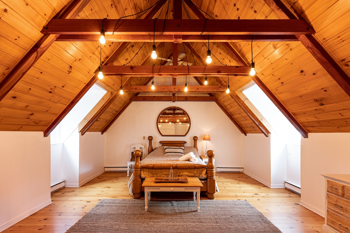 We aimed to create an authentic and genuine space that embraces our guests with positive energy. It's the outcome of seeking balance and fostering a dialogue between architecture, nature, and art. While the design might appear minimalist, it's often far from it; there's an intention to cultivate warmth. The cottage is located 15 minutes from the north side of Mont Tremblant, 10 minutes from Mont Blanc, and a 5-minute drive from public beaches. *ask us for a late check out availbability*