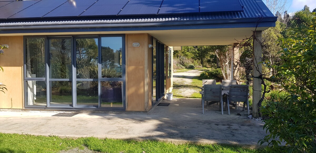 Խաղաղ, եթե ուզում եք հանգիստ գիշերներ քնել ինքնուրույն քոթեջում, սա հենց այդպես էլ կա ։ Համայնապատկերային ծովի տեսարանները գյուղական այգու և բնաշխարհիկ թփուտների շրջակայքում ։ Չմոռանաք դուրս գալ և նայել ապշեցուցիչ գիշերային երկնքին, կտեսնեք կաթնագույն ճանապարհը ։ 5 րոպե հեռավորության վրա Takaka & կենտրոնական ամենուր Ոսկե Bay. Շատ հարմարավետ և ժամանակակից լոգասենյակ ՝ ներքնահարկով ջեռուցմամբ: Առանձին տախտակամած ննջասենյակից ՝ ծովի տեսարանով ։ Ամբողջական խոհանոցային հարմարություններ: Խելացի հեռուստացույց ֆիլմերով: Հրաշալի թռչնաշխարհ:
