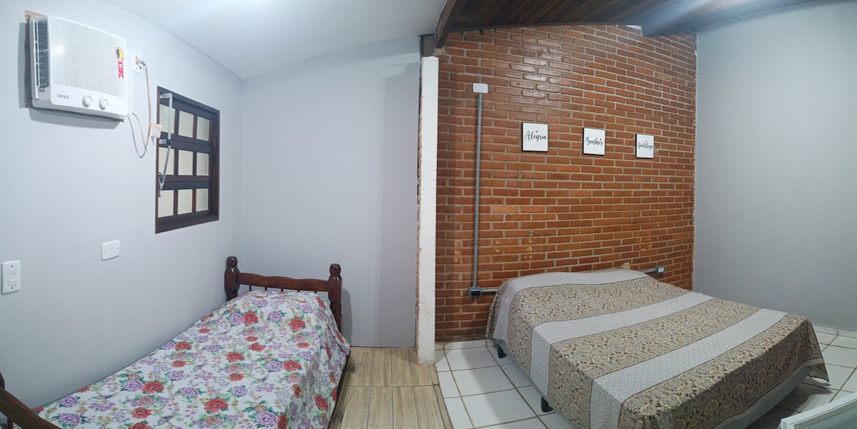Բարի գալուստ Pousada Entre Folhas - ի հարմարավետ բնակարան Վայելեք ընդարձակ առանձնաբաժին ՝ երկտեղանի մահճակալով և երեք մեկտեղանի մահճակալով, ամբողջական առանձին խոհանոցով, մինիբարով, հեռուստացույցով, առանձին լոգասենյակով ՝ վարսահարդարիչով և USB վարդակներով ։ Մենք երաշխավորում ենք հարմարավետություն ՝ որակյալ ներքնակներով, օդորակիչով օդորակիչով և ժամանակակից հարմարություններով ։ Զգացեք ձեզ ինչպես տանը ՝ այս հյուրընկալ արձակուրդում, որը իդեալական է ընտանիքի և խմբի համար ։ Տուն, որը միավորում է հարմարավետությունը, գործնականությունը և հմայքը բնության սրտում ։