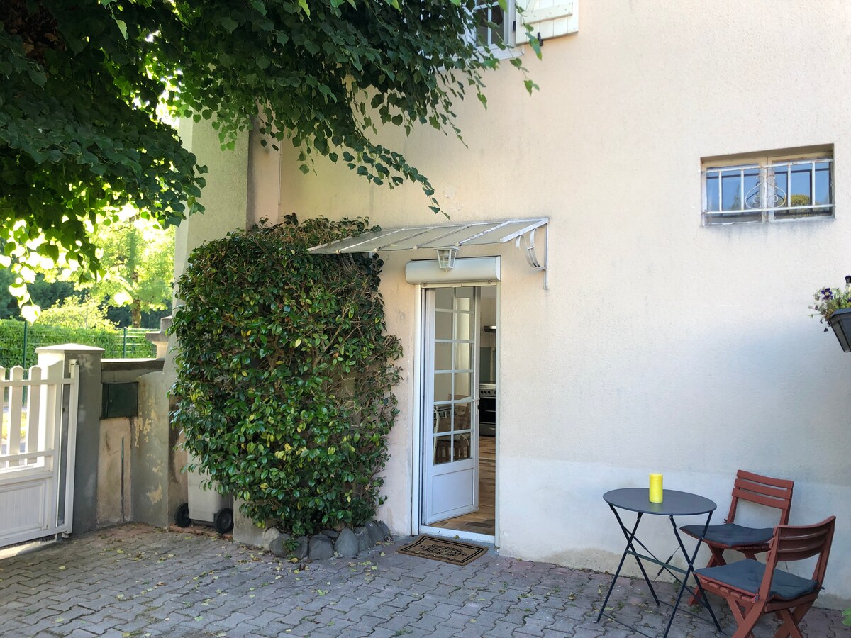 Բարի գալուստ ձեր տուն ։ Մեր տան հավելվածը (50 քմ) ամբողջովին նվիրված է ձեզ ՝ իրական հանգստի համար: Առանձին մուտք ՝ 18 մ2 մակերեսով առանձին տեռասով, պարտեզի կահույքով, մանղալով ՝ ընտանիքի կամ ընկերների հետ կիսվելու համար ։ Ճաշակով ձևավորված ՝ դուք ունեք կահավորված խոհանոց, որը բաց է հյուրասենյակի համար, 2 ննջասենյակ վերևում ՝ լոգասենյակով և զուգարանակոնքով ։ Այս տունը գտնվում է մեր հիմնական տան ներքին բակում, որը սովորական մեծ տուն է: