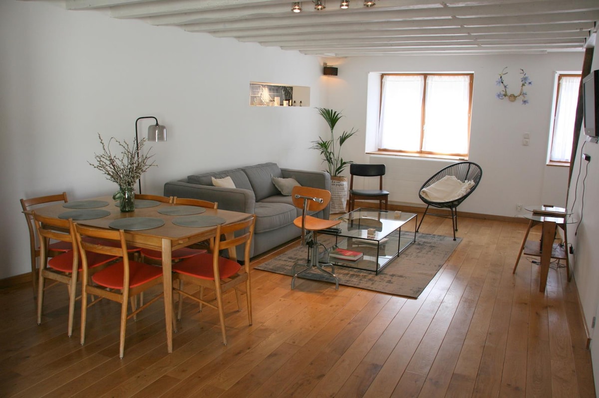 Լիովին վերանորոգված բնակարան, որը գտնվում է Parc de la Bouzaise - ի և Hospices de Beaune - ի միջև ։ Այս դուպլեքսը հին աշխարհի հմայքը կապում է ժամանակակից հարմարավետության հետ: Այն իդեալականորեն գտնվում է հանգիստ տարածքում, բայց շատ մոտ է Բեյունի ռեստորաններին, բարերին, խանութներին ։ Բնորոշ այս վայրից հիանալի տեսարան է բացվում դեպի հրապարակի այգին և Քոլեգիալե Նոտր Դամը ։