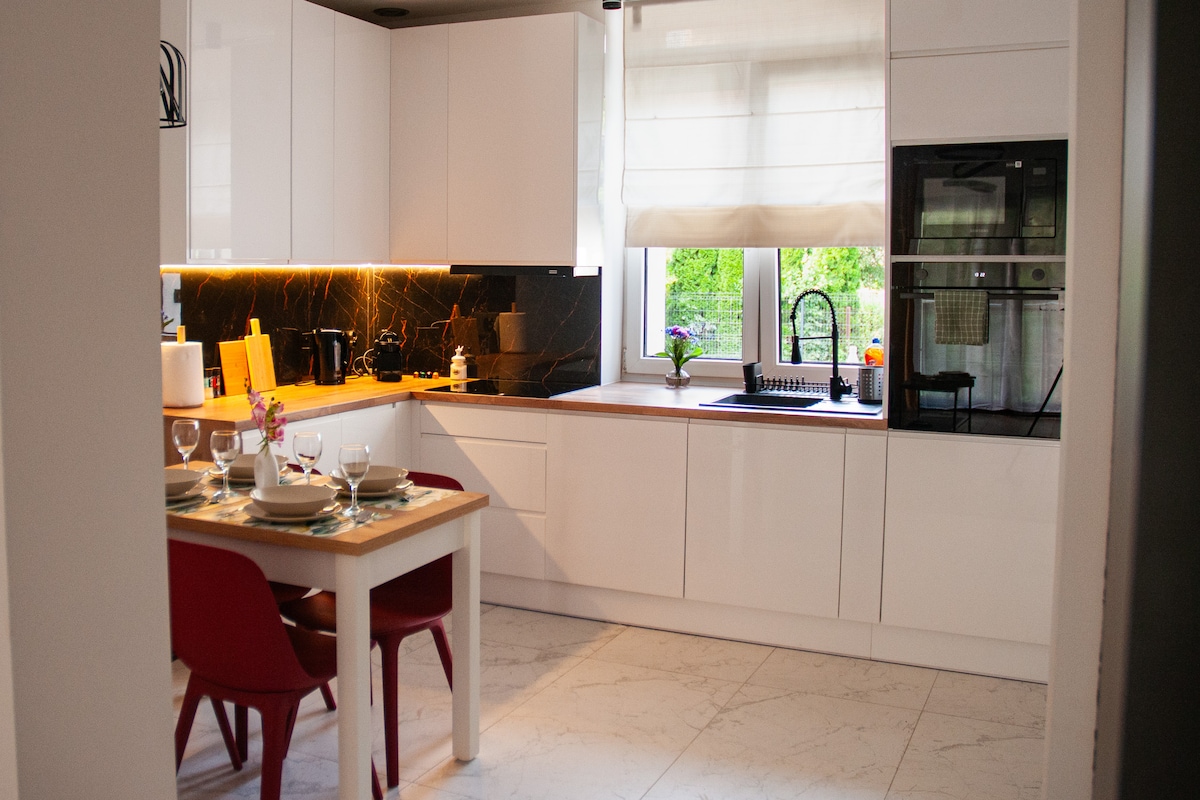 Այս անգամ մի քանի ճանապարհորդներ ձեզ տրամադրում են իրենց տարածքը ։ Հրավիրում ենք ձեզ անկրկնելի, մասնավոր բնակարան մեր տանը: Մենք առաջարկում ենք ձեզ երկու ընդարձակ սենյակներ, որոնք հագեցած են պատմությամբ կահույքով, յուրահատուկ այգի ՝ խորովածի համար նախատեսված տարածքով և երկու անվճար ավտոկայանատեղով: Քայլելու հեռավորությունը Aqua Park - ից ընդամենը 2 րոպե է, դեպի Multikino և Serenada խանութներով և ռեստորաններով - 3 րոպե: 15 րոպե ավտոբուսով դեպի կենտրոն: Մենք տրամադրում ենք ուղևորություններ դասական մեքենաներով ՝ Datsun 280Z, 500 SL, Coupé quattro, MX -5: