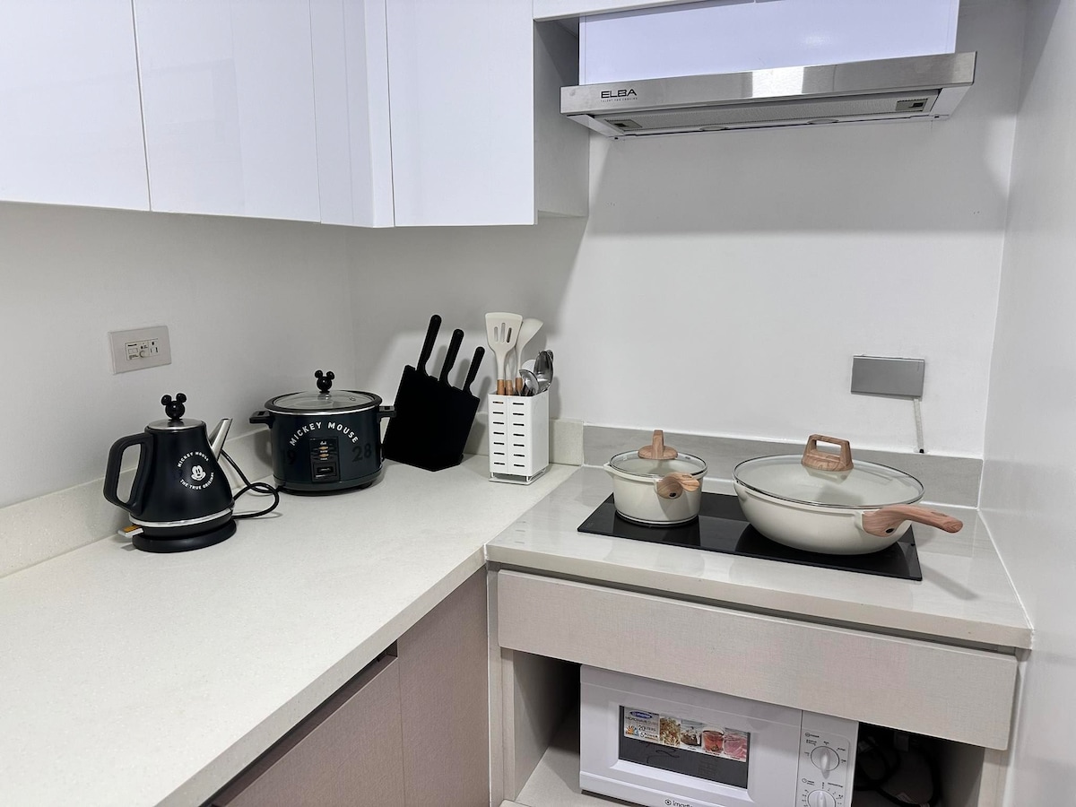 Մնացեք այս ժամանակակից 1 սենյականոց բնակարանում՝ Calyx Residences-ում։ Վայելեք մասնավոր պատշգամբը, ամբողջական խոհանոցը և դեպի «Այալա Մոլ» գնալու հարմարությունը՝ ընդամենը մի քանի քայլ հեռավորության վրա։ Հարմար է գործարար ուղևորների կամ զույգերի համար, որոնք հարմարավետություն են փնտրում քաղաքի կենտրոնում։