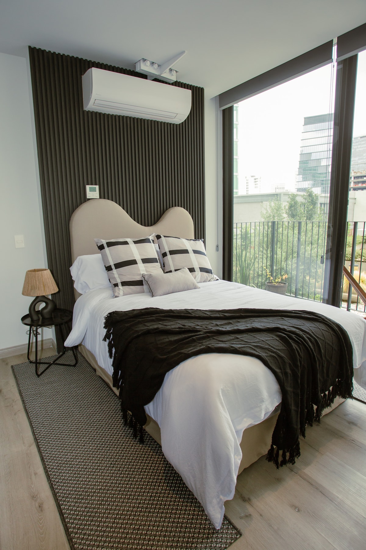 - Acogedor y exclusivo estudio ejecutivo con cama queen-size, escritorio y aire acondicionado. - Balcón para tomar aire fresco. - Cocina equipada. - Ingreso con cerradura inteligente y clave personalizada y exclusiva para cada huésped. - Rooftop panorámico con restaurante en el nivel 9. - Sala de juntas equipada para reuniones profesionales (consultar disponibilidad). - Acceso 24/7 con código personalizado. IMPORTANTE: No contamos con estacionamiento privado dentro de la propiedad.