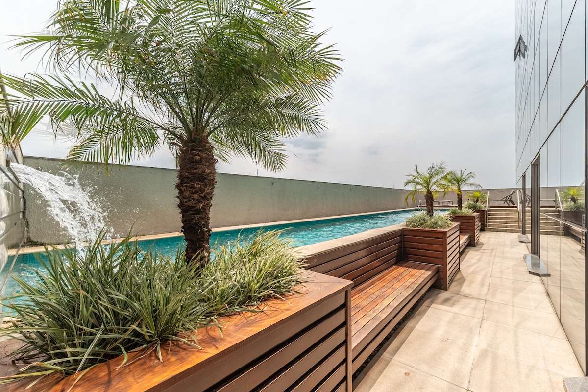 Fully equipped apartment at Temple Batel, located in one of the most valued areas of Curitiba. Ideal for up to 4 guests, it offers comfort and practicality for both leisure and business trips. The building features a heated pool on the rooftop, a modern gym, 24/7 concierge service and well-maintained common areas. The apartment includes a private balcony, is well lit and faces the back of the building, providing a quieter stay with a pleasant view in the Batel neighbourhood.