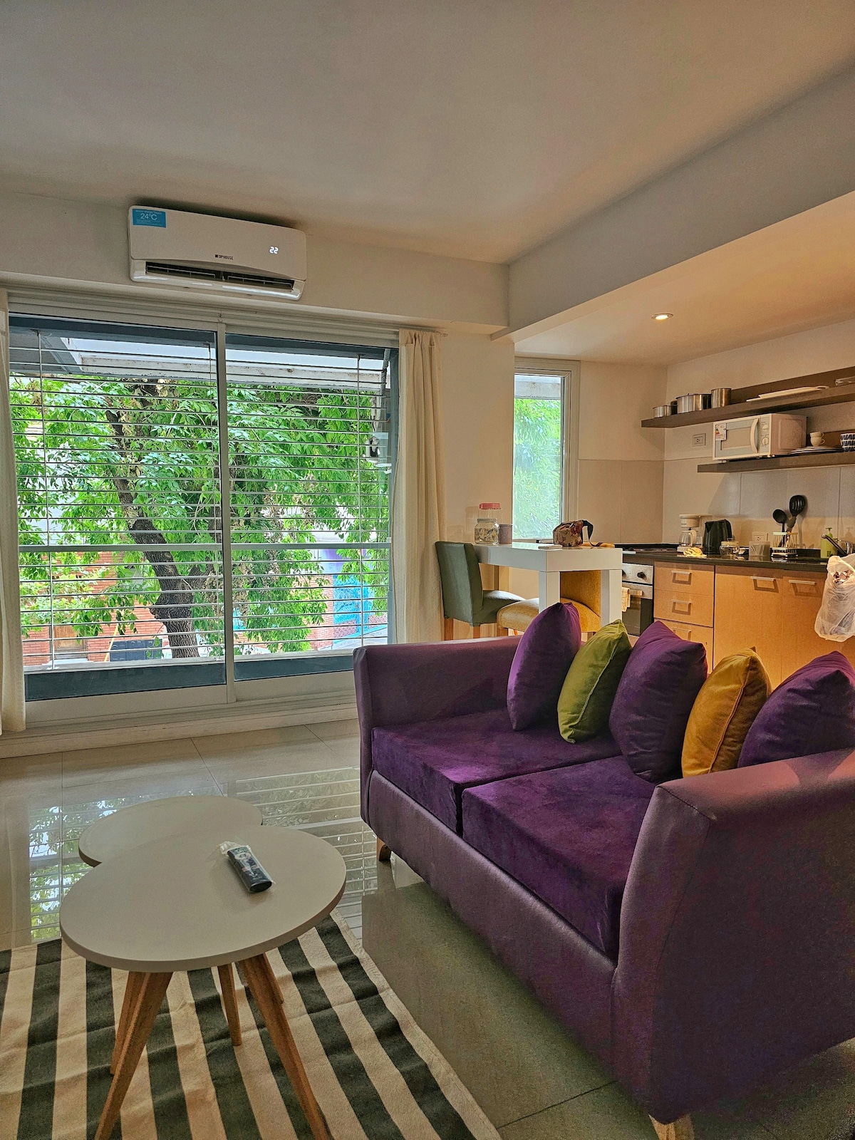 Գեղեցիկ բնակարան Բուենոս Այրես քաղաքի գաստրոնոմիական պոլոյում ՝ լուսավոր և խնձորի թոքերի լայն տեսարանով ։ Այն ունի սենյակ և թախտ հյուրասենյակում, օդորակիչ հյուրասենյակում և ննջասենյակում, Սմարթ հեռուստացույց և շատ այլ հարմարություններ ։ Գտնվում է հանգիստ և գեղեցիկ բնակելի տարածքում ՝ մետրոյի կայարանից և այլ հասարակական տրանսպորտից ընդամենը 200 մետր հեռավորության վրա ։