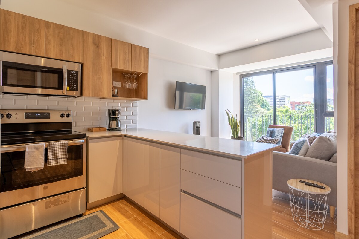 Այս փոքր, բայց լավ պլանավորված բնակարանում դուք գտնվում եք Գվատեմալա քաղաքի կենտրոնում՝ ամեն ինչի մոտ։ Բնակարանում կա տեռաս՝ դրսում գրիլ պատրաստելու/կերակրելու համար նախատեսված մեծ տարածքով, և լիովին կահավորված խոհանոց։ Մեկ ննջասենյակով և բազմոցով բնակարանը տեղավորվում է մինչև երեք հոգու համար ։ Այն ժամանակակից համալիրի մի մասն է, որտեղ կան բուսականություն։ Բացի այդ, համալիրը ներառում է փոքրիկ սրճարան/բար առաջին հարկում և հարևանությամբ՝ բար, որտեղ կարելի է գտնել Գվատեմալայի լավագույն գարեջրերից մեկը։